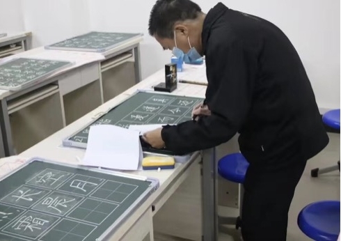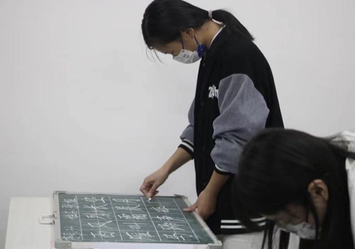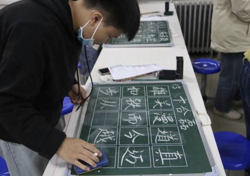 粉笔字组书写《忆秦娥》的节选,选手们在书写中体悟伟人的壮怀与远嘱,粉笔在选手们手中飘逸洒脱,展现了优秀师范生的风采。