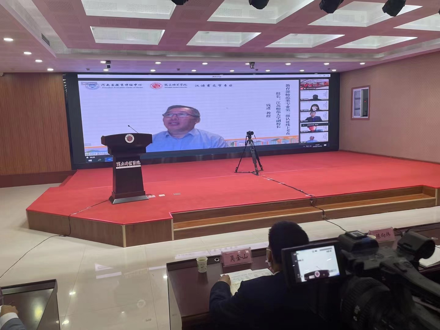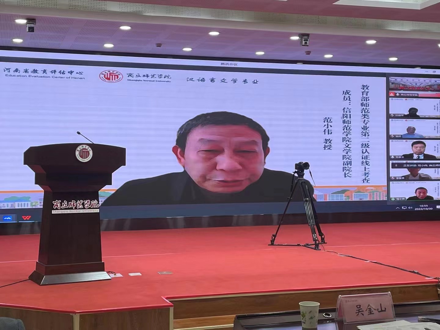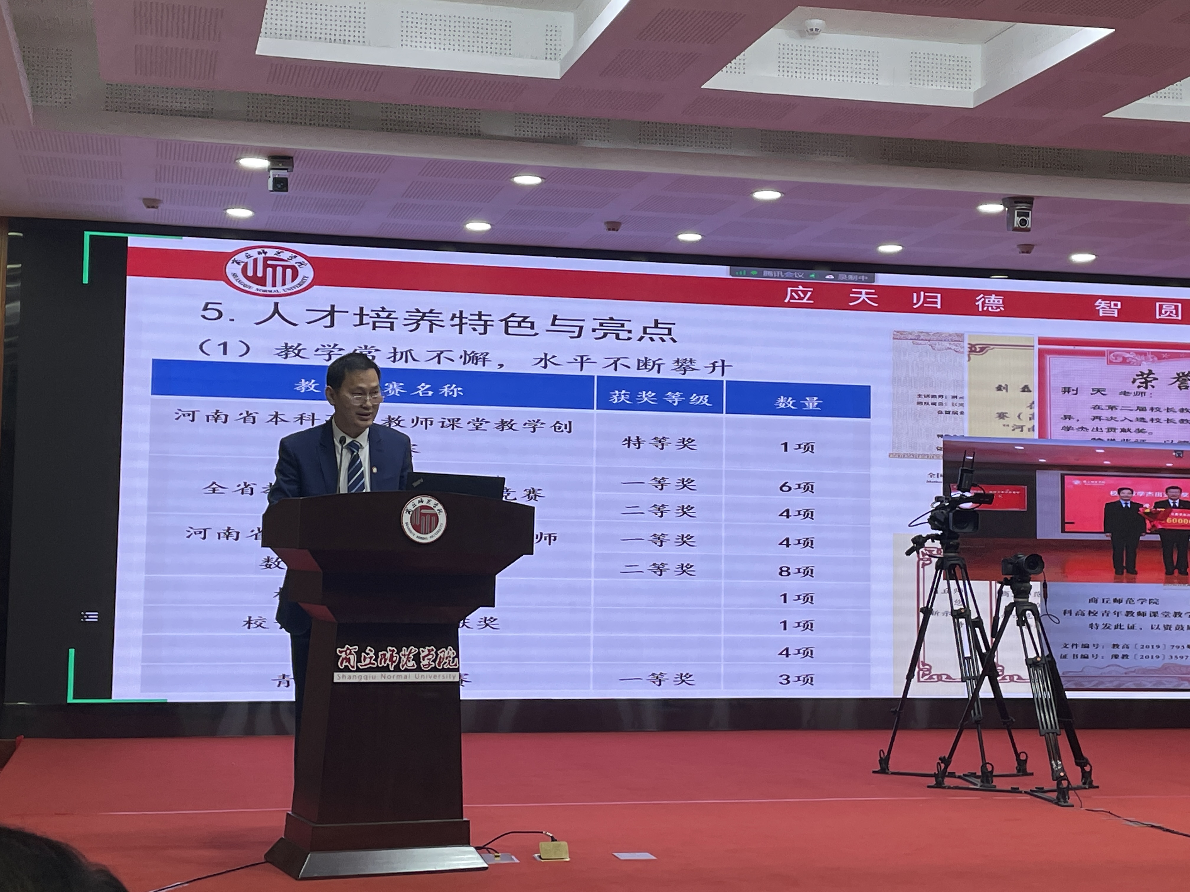 校党委副书记、校长陈向炜对参加师范类专业认证线上考查的联合专家组专家表示热烈欢迎,并以《增强服务基础教育能力打造教师教育优势特色》为题,从构建新模式、提高竞争力、人才培养呈现新气象,探索新路径、形成新格局、融合共生取得新突破,搭建新场景、打造新平台、师范教育彰显新特色,着眼新目标、对接新需求、专业建设取得新进展等4个方面向专家组重点汇报了学校教师教育发展情况。他指出,商丘师范学院起于师范、兴于师范,教师教育底色厚重,师范教育品牌响亮。多年来,学校秉持“应天归德、智圆行方”校训,始终将打造“教师教育精品工程”作为专业集群建设的重点工作。聚焦基础教育改革发展需求,优化整合教育资源,着力办好学前、小学、中学教育等相关专业,彰显师范教育优势特色。