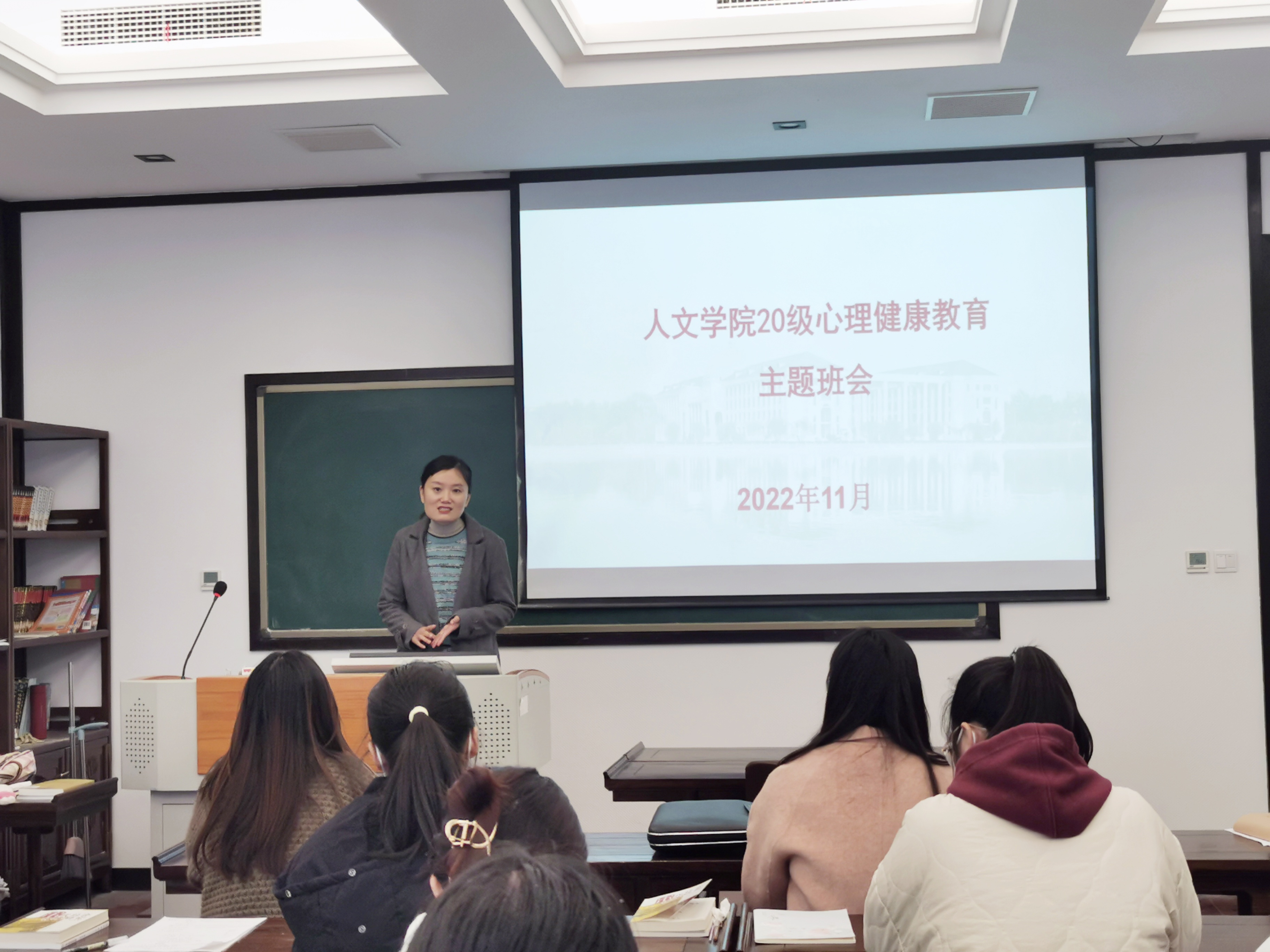 会上,李红首先阐述了心理健康对于个人成长成才的重要性,接着从校园封控管理、考研学校选择、人际交往、家庭成员等方面可能带来的各种压力进行分析,最后引导同学们要时刻关注自己的身心健康,保持良好生活作息,出现问题或疑虑及时向身边人求助。