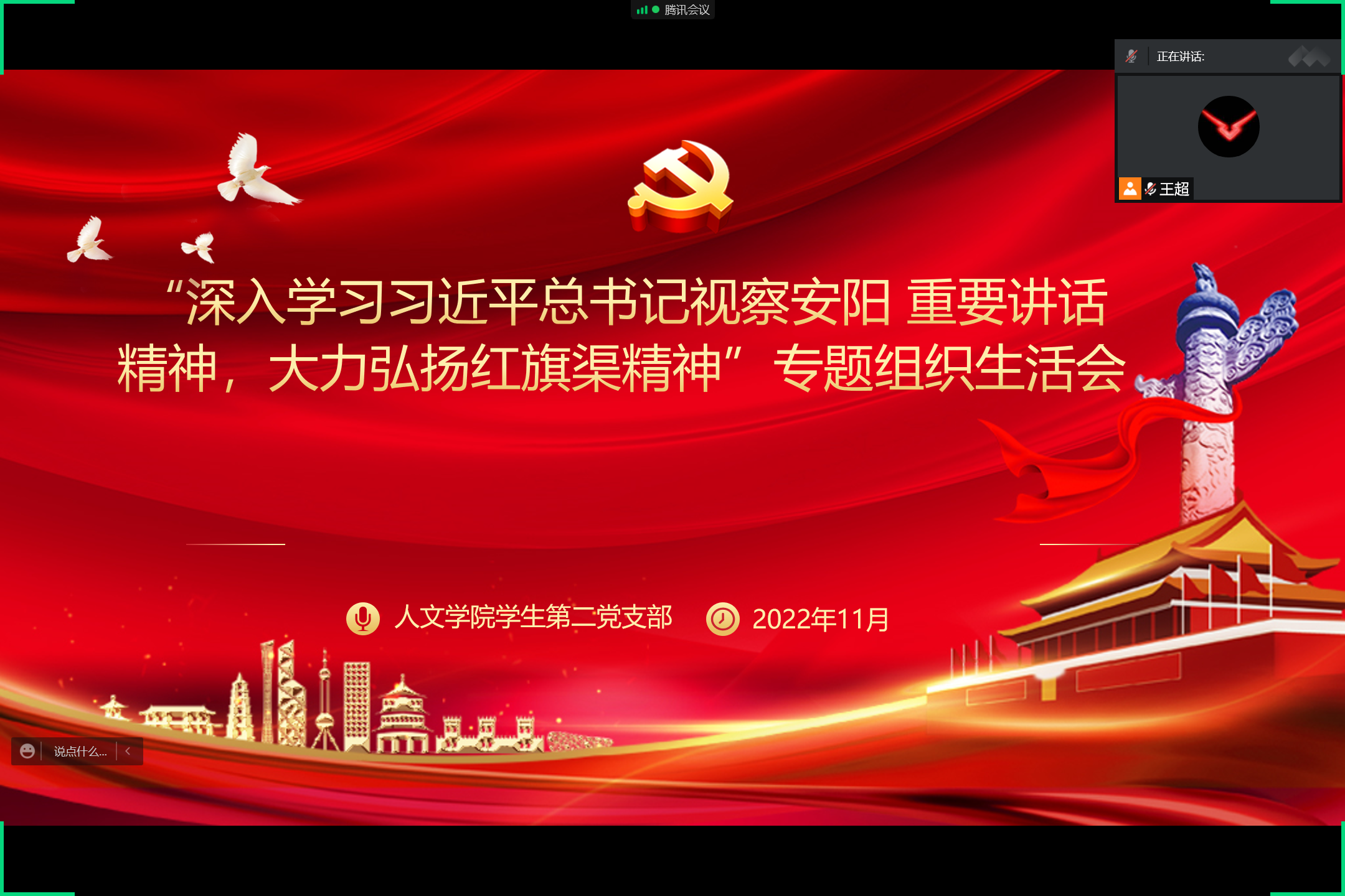 为深入学习贯彻党的二十大精神和习近平总书记视察河南安阳重要讲话精神,推动学院各项工作不断创造新的业绩。2022年11月23-24日,国产欧美一区二区九个师生党支部以“学习习近平总书记视察安阳讲话,大力弘扬红旗渠精神”为主题召开专题组织生活会。学院处级党员干部以普通党员身份参加。会议以“线上+线下”方式进行,由各支部书记主持。