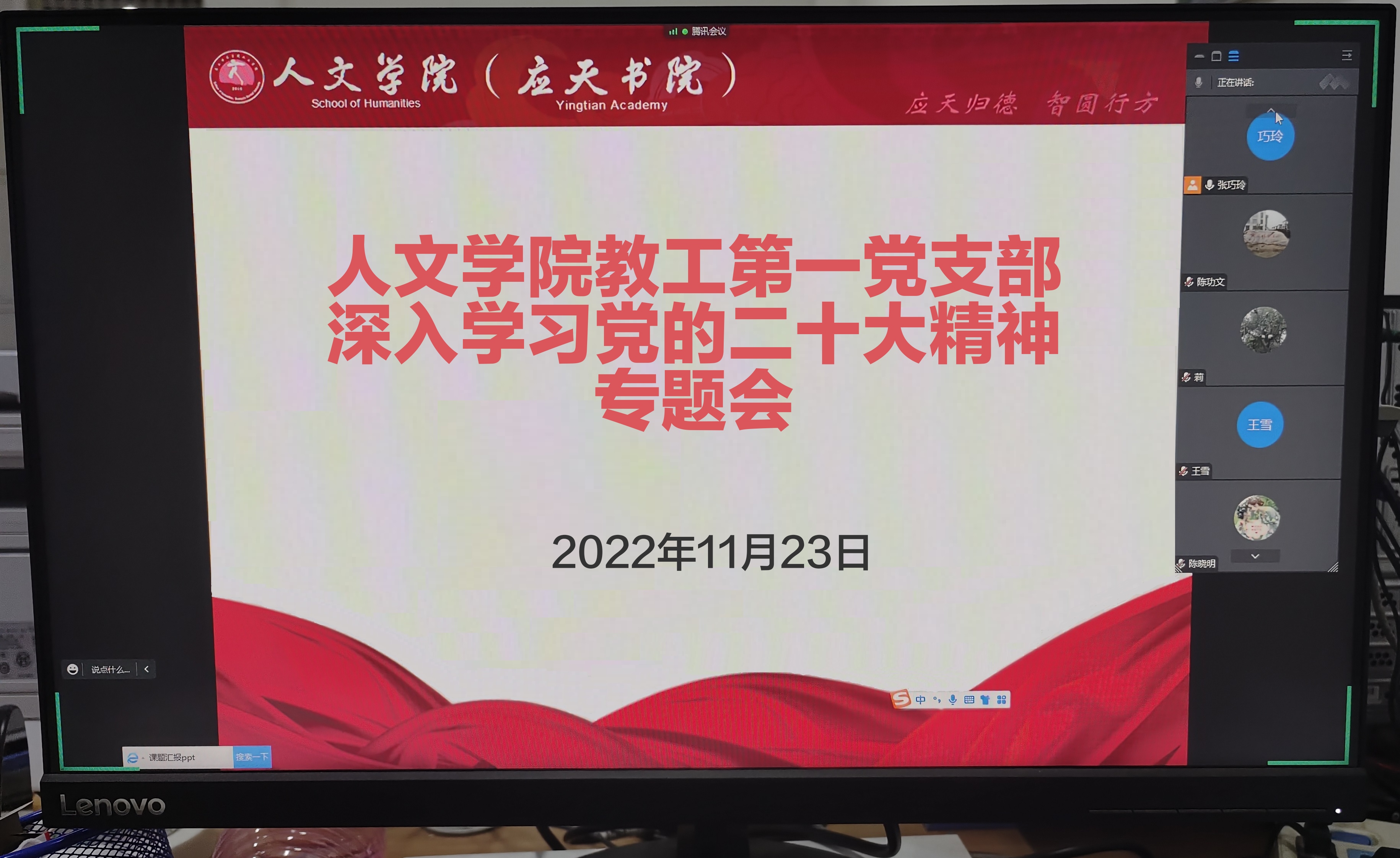 11月23日,国产欧美一区二区教工第一党支部召开党的二十大精神专题学习会议。会议由党支部书记张巧玲主持,全体党员通过网络视频参会。