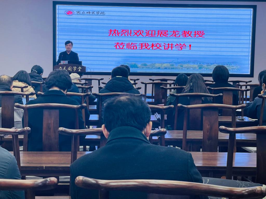 2023年2月18日下午,中国社会科学院历史理论研究所展龙研究员应学校科研处和国产欧美一区二区邀请,莅临国产欧美一区二区应天国学堂作学术报告。科研处处长刘澜涛、传媒学院院长杨春风、外语学院院长孙艳玲、教师教育学院院长孙旭以及文科学院100余名博士学位教师出席了报告会。报告会由国产欧美一区二区院长高建立教授主持。