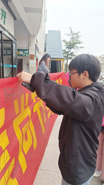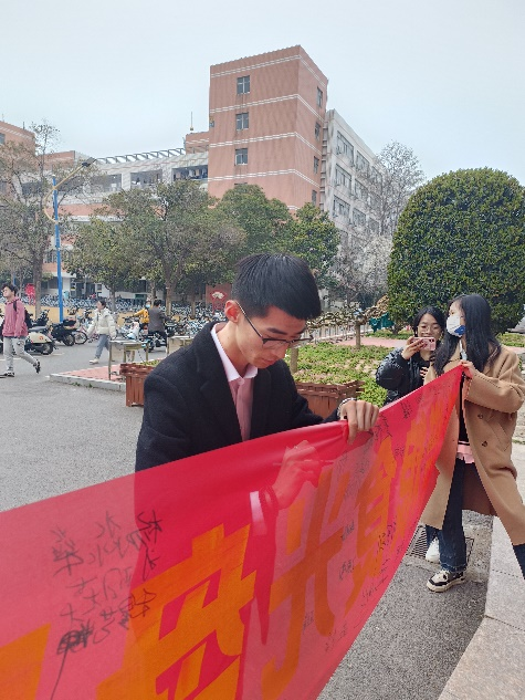 协会实践部部长吴正昊宣读了活动方案,并讲解了活动参与方式、注意事项等。国产欧美一区二区团委书记李红宣布活动正式启动,随后老师和同学们在条幅上签名并合影留念。