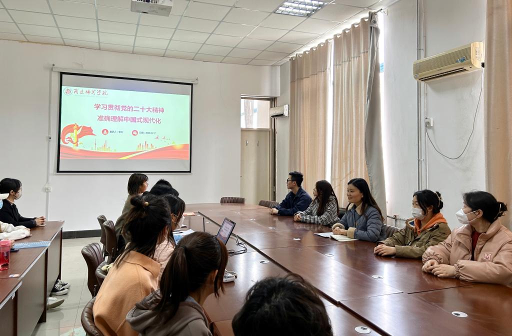 李红以《学习贯彻党的二十大精神准确理解中国式现代化》为题,从中国式现代化的提出、中国式现代化的特征、中西方现代化的对比、中国式现代化的启迪四个方面进行详细讲述。通过此次宣讲活动,加深了同学们对如何全面正确理解中国式现代化的内涵和特征及中国式现代化全面推进中华民族伟大复兴有了更加深刻的认知,同学们纷纷表示作为新时代的青年人,要坚定理想信念,不断学习,勇于承担历史使命和责任。