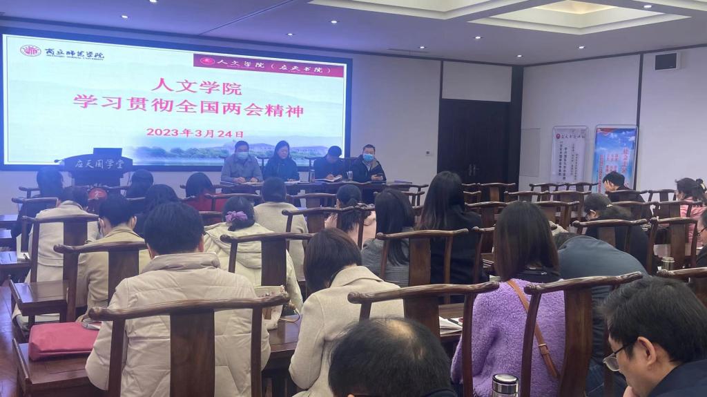 3月24日下午,国产欧美一区二区在汉梁楼国学堂召开学院党委理论学习中心组(扩大)学习会,传达学习全国两会精神。学院全体教职工参加会议,会议由学院党委书记陈晓明主持。