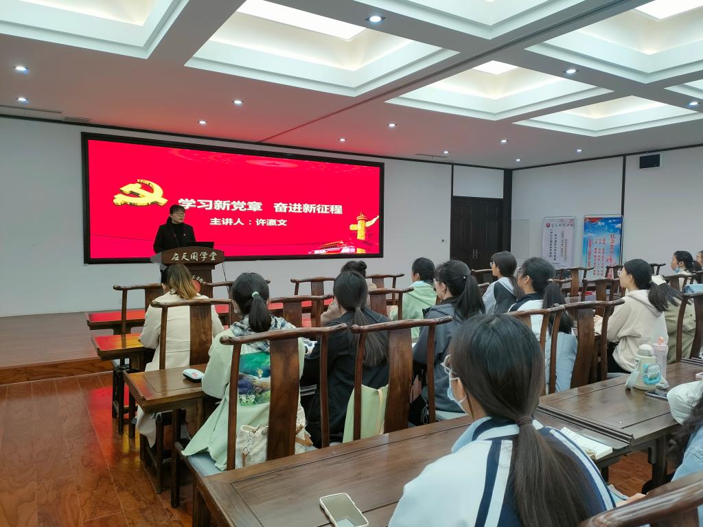 国产欧美一区二区学工办主任、学生第三党支部书记许瀛文以“学习新党章、奋进新征程”为主题,从“学习和遵守党章、党章的概述、党章的发展历程、党章的总纲和党章的条文”五个方面进行培训交流,向入党积极分子阐述新党章的变化和增加内容,并叮嘱入党积极分子务必多读多思多悟新党章,以赤诚之心向党组织靠拢。