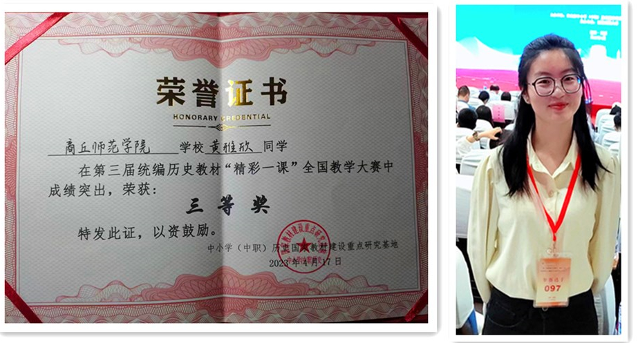 4月15日至17日,第三届统编历史教材“精彩一课”全国教学大赛暨历史教材研究高端论坛在福建师范大学举行。我院历史学专业2020级的黄雅欣同学经过激烈角逐,最终荣获三等奖。