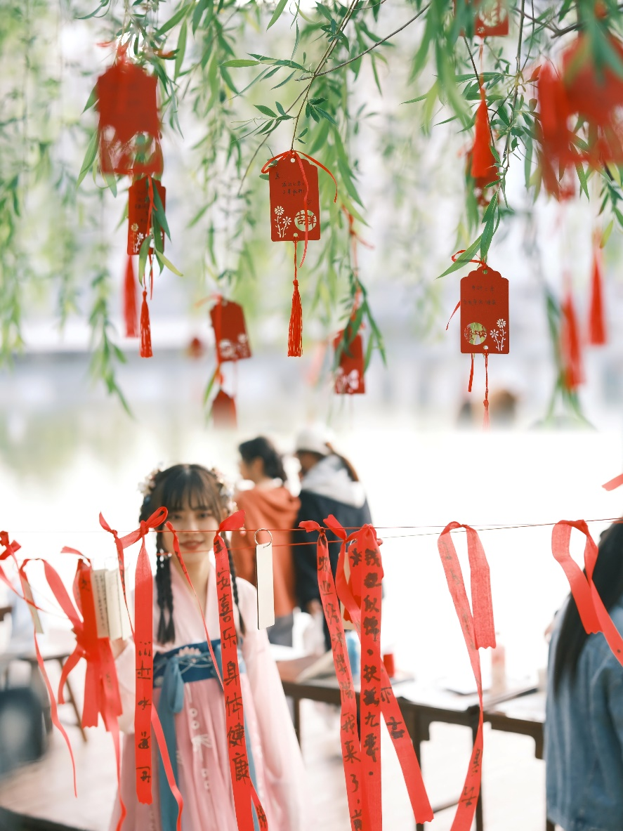 春禊仪式,延上巳风采,传承家国礼仪;修沐攀柳,沾草木清香,拂水祓禊;上巳彝风,听山歌对唱,体验彝族习俗;踏歌起舞,踏地为节,联袂而舞;司兰配芳,巧制香囊绣球,寄托美好祝愿;秋韵雅集,飞花对弈,雅歌投壶,上巳祈愿,红绸漫树,福牌摇曳,湖灯熠熠……活动全程,工作人员细心讲解、演示上巳节俗,趣味活动惊喜连连,精美礼品琳琅满目,到场师生目不暇接,载歌载舞,流连忘返。