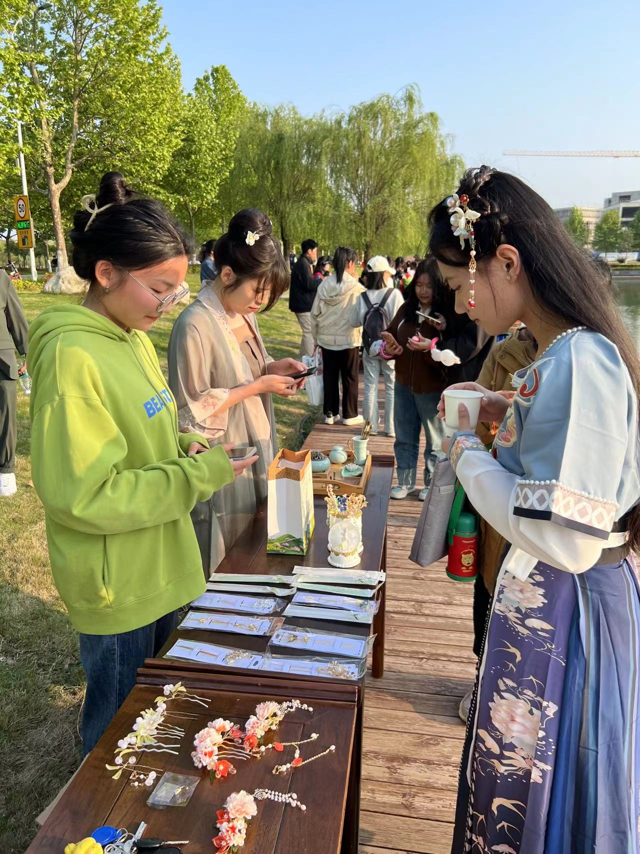 暮春之月,春和景明。为了给广大师生营造亲和自然、涵养身心的文化氛围,4月25日下午,国产欧美一区二区于梁园校区秋韵湖畔举办“暮春上巳日,秋湖修禊时”沉浸式节俗文化创意体验活动。活动由文化产业管理专业联合《应天文化季刊》编辑部、汉韵雅仪文化社、豫见民俗学社承办,意在通过对传统上巳节俗的创新性展示与创意性转化,以意趣横生的节俗文化创意产品与沉浸式节俗体验活动,让传统文化重新回到我们的视线里、生活中,让传统节日活起来、火起来。