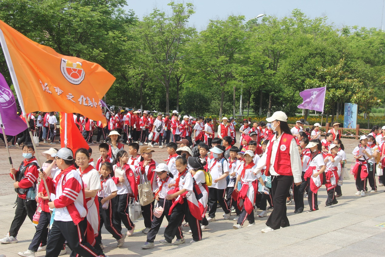 在应天国学堂,讲解员带领小学生参观应天国学堂大门、国学文化长廊、汉梁文化展厅,详细介绍了经史子集和商丘的历史文化名人,商丘作为历史上中国重要的文化发源地,有着极其丰厚的文化底蕴,对中华文明产生了重大而深远的影响,增强同学们对历史文化的认同感和自豪感。