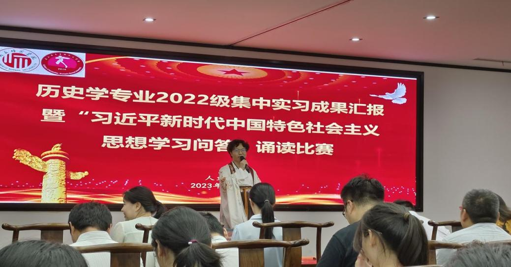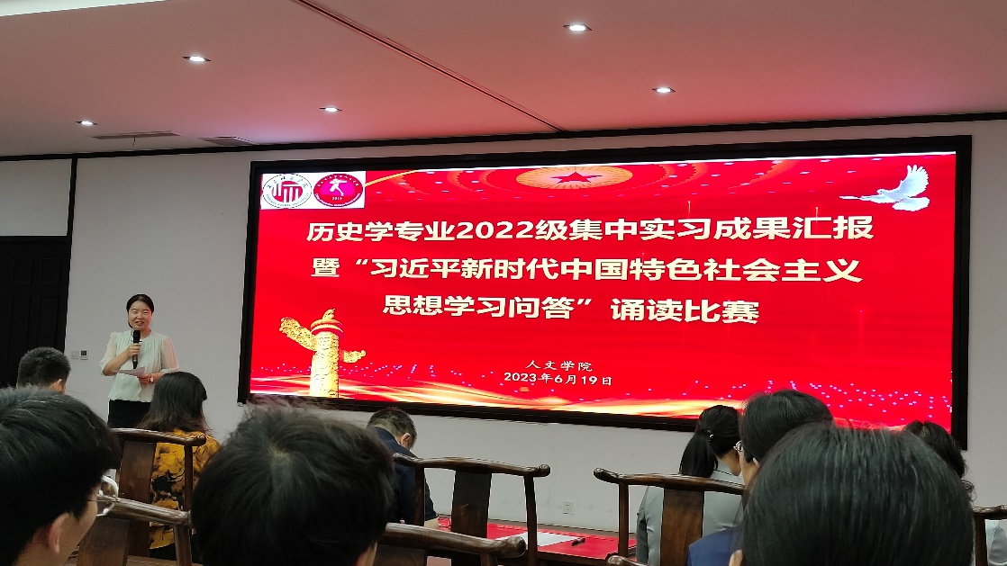 6月19日下午3时,历史学专业2022级集中实习成果汇报暨“习近平新时代中国特色社会主义思想学习问答”诵读比赛于汉梁楼国学堂进行。国产欧美一区二区党委书记陈晓明、副书记卢忠雷、副院长冯志伟、学工办主任许瀛文、21级辅导员秦淑平和历史系全体指导老师、22级历史系全体学生参加本次见习活动。主持人由历史系舒笛老师担任。