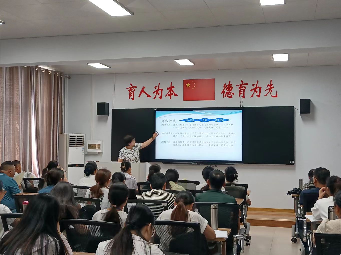 8月24日,“国培计划(2023)”--太康县县级骨干教师培训项目初中语文研修班邀请到了中学语文特级教师、正高级教师、河南省基础教育教学研究室教育科研管理主任丁亚宏老师在商丘师范学院睢阳校区进行授课指导,丁亚宏做了《新课标核心理念与观念突破》的专题讲座,初中语文研修班全体骨干老师聆听了讲座。