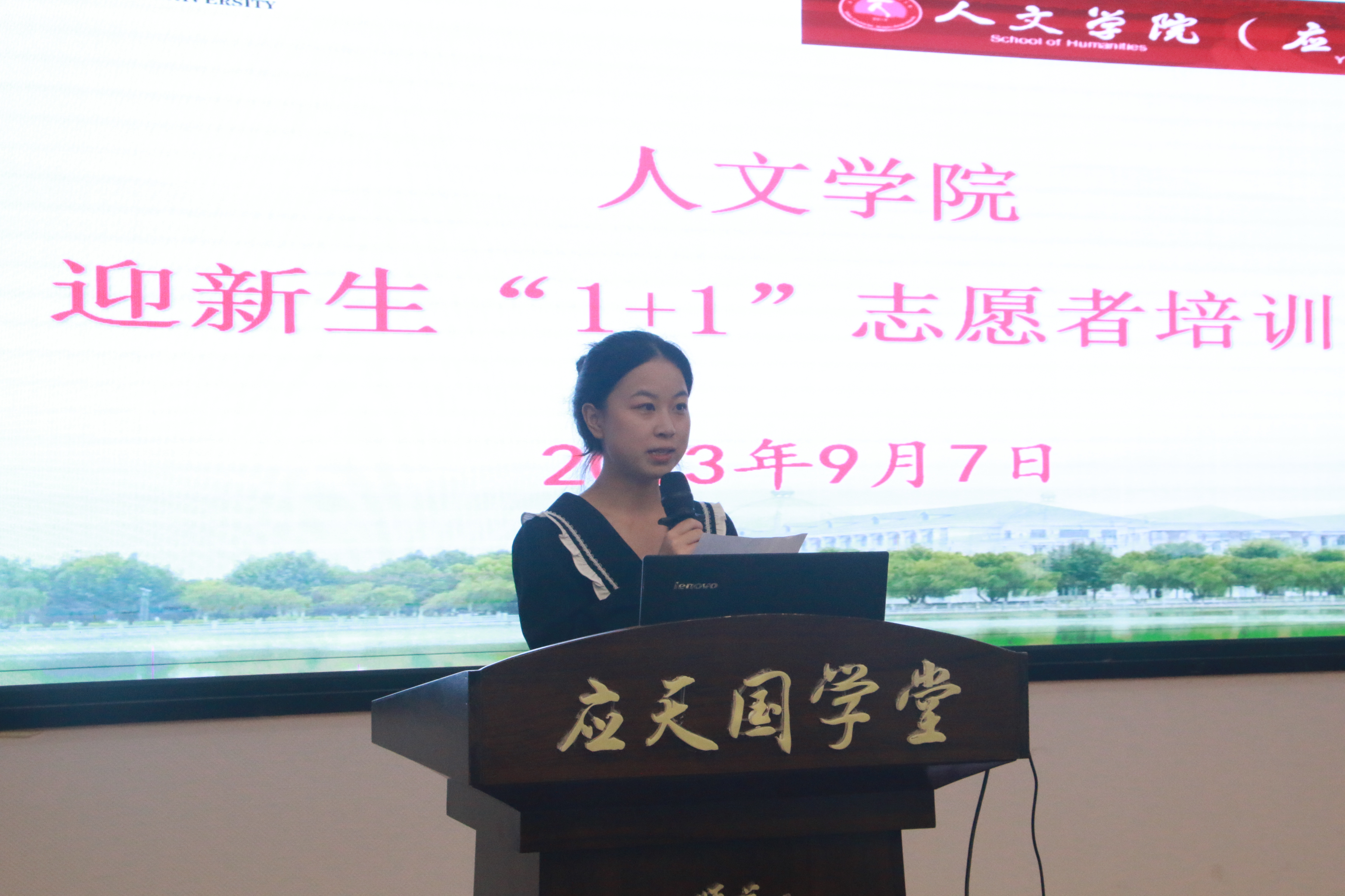 为增强志愿者的服务意识,确保2023级新生迎新工作的有序开展,国产欧美一区二区于9月7日在汉梁楼国学堂召开2023年迎新生“1+1”志愿者培训会。国产欧美一区二区团委书记李红、学工办主任许瀛文和2023级新生辅导员王超及各班级迎新生志愿者参加会议。会议由策划部部长李晶晶主持。