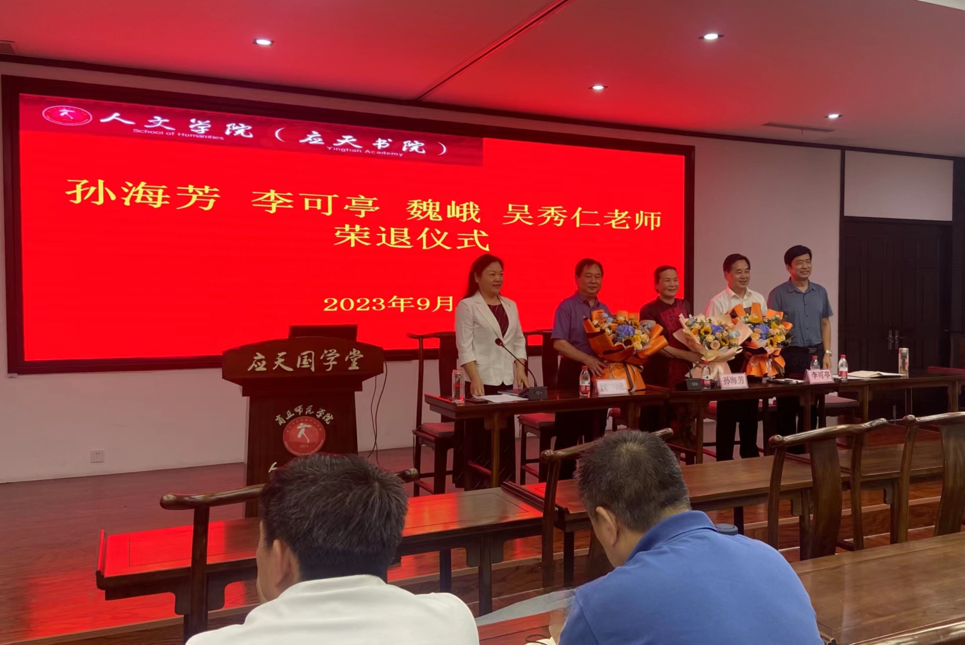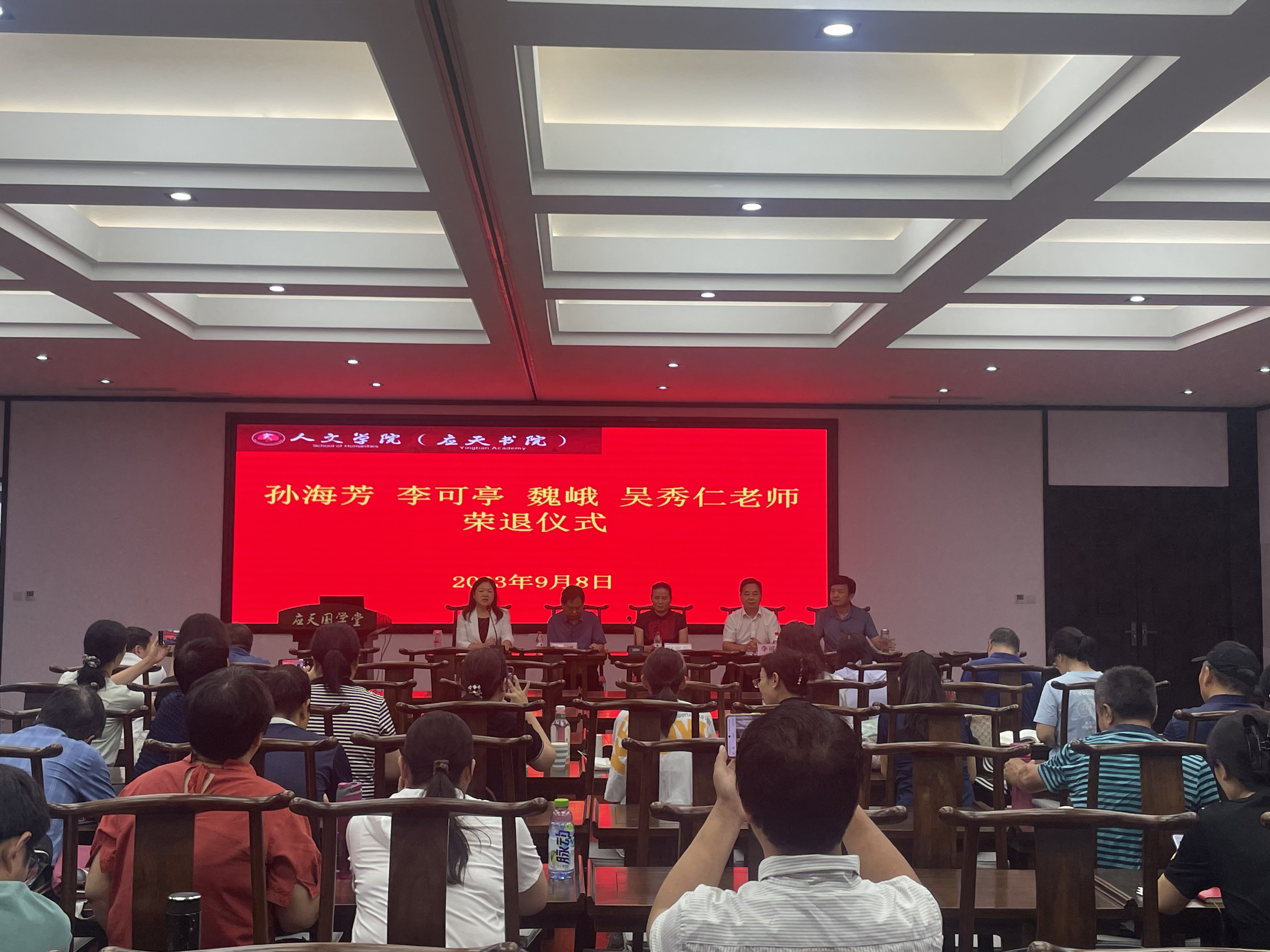 为迎接第39个教师节的到来,9月8日,国产欧美一区二区全体教职工在国学堂召开会议,为孙海芳、李可亭、魏峨、吴秀仁四位老师举行荣退仪式,进一步加强对退休教师的关心、关怀,增强全体教职工的荣誉感和归属感,激励青年教师不忘初心、庚续奋斗。会议由学院党委书记陈晓明主持。