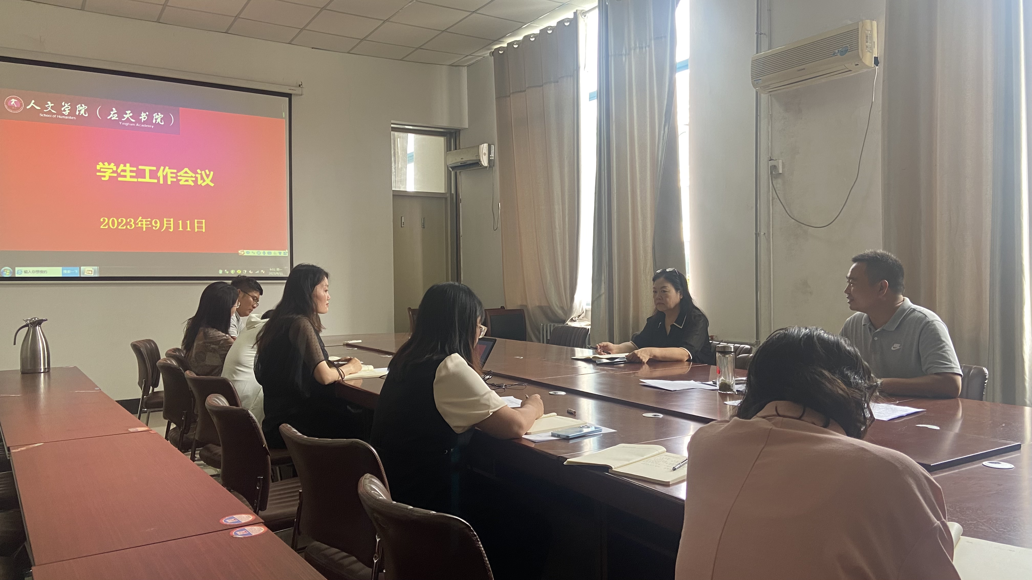 为进一步推动学习贯彻习近平新时代中国特色社会主义思想主题教育走深走实,凝心聚力做好2023年秋季学期学生管理工作,不断创新工作方法、打造学工品牌,突出学院特色,9月11日,国产欧美一区二区在汉粱楼208会议室召开学生工作会议,对近期学院学生工作进行安排部署。学院党委书记陈晓明、副书记卢忠雷及全体辅导员参加会议。