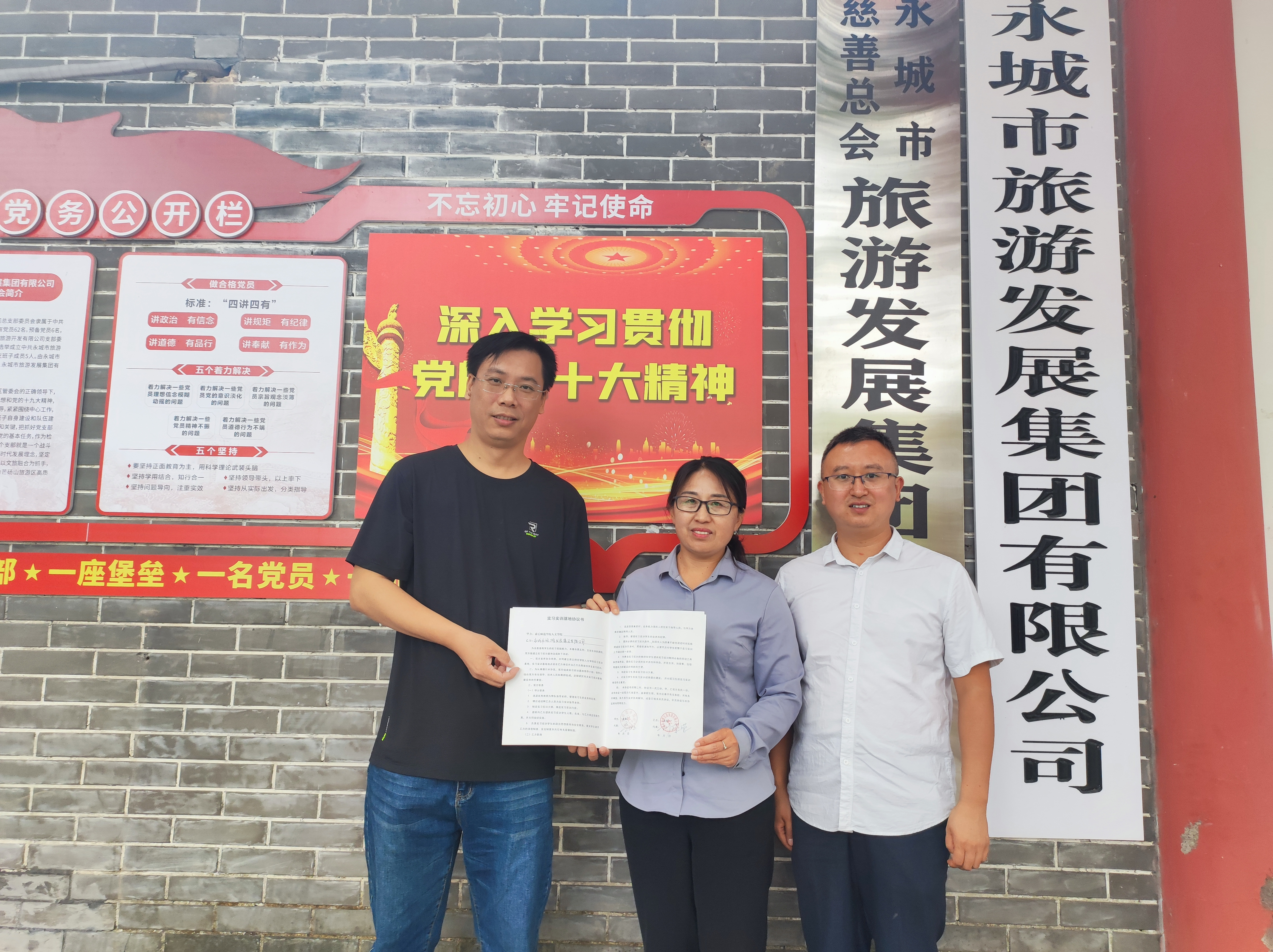 为更好地培养国产欧美一区二区文化产业管理专业同学在企业运营和管理、文化产品设计和营销、文化市场开发等领域的实践应用能力,9月23日,文化产业管理专业教师王传奇、赵亮赴永城芒砀山汉文化景区,签订实习实训基地协议。