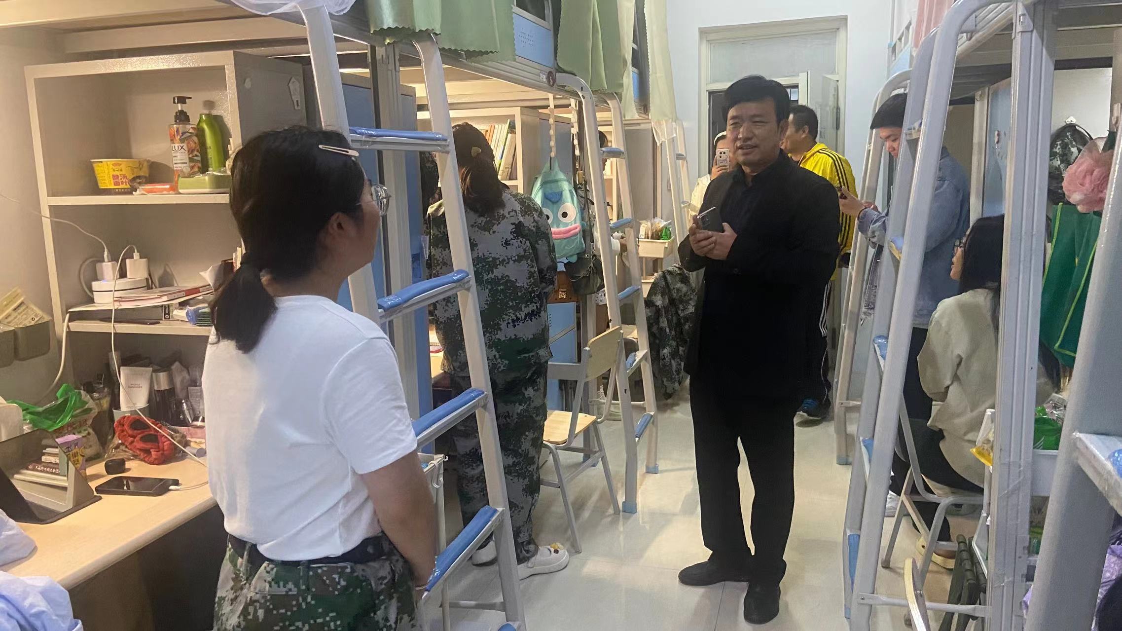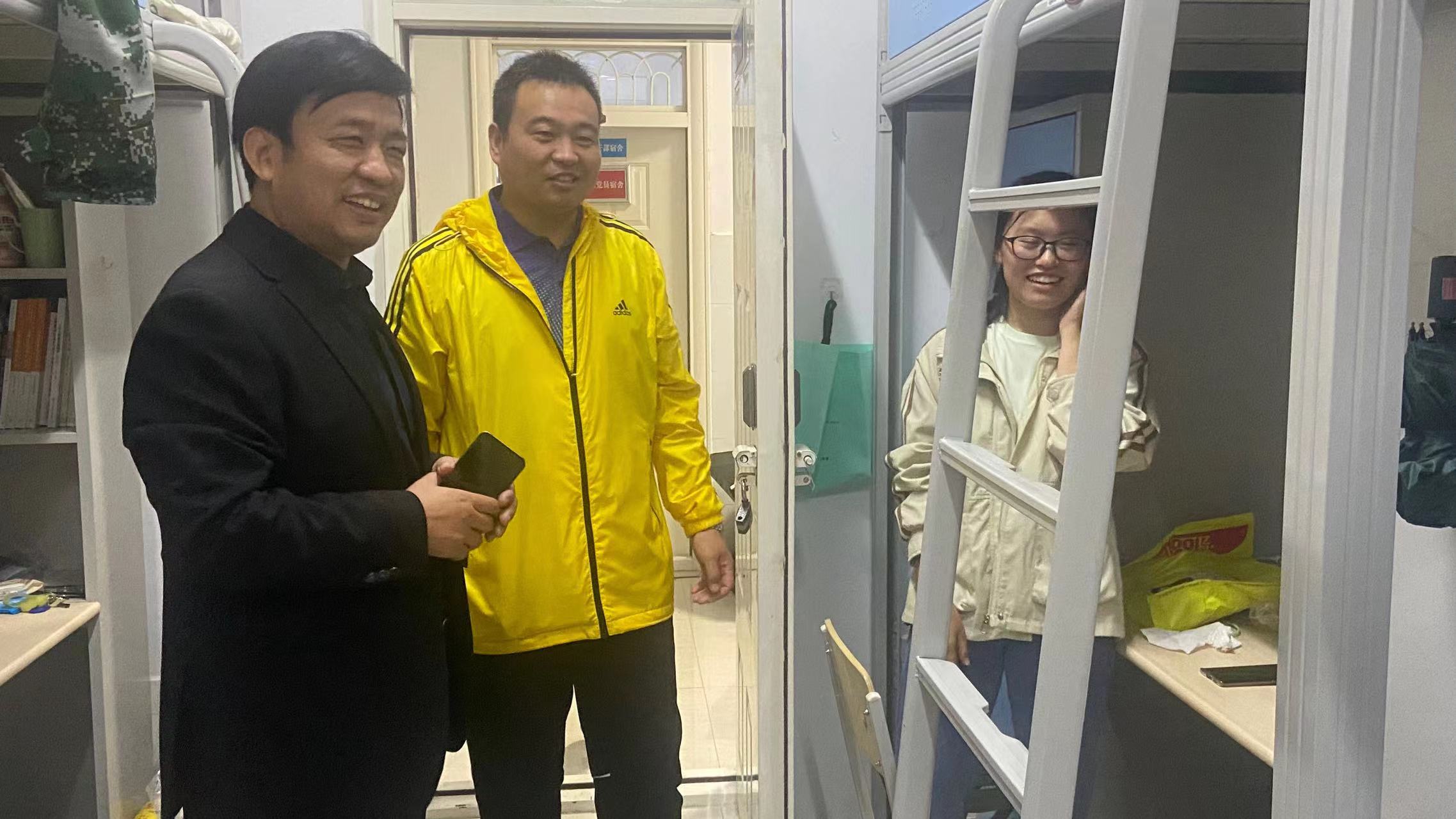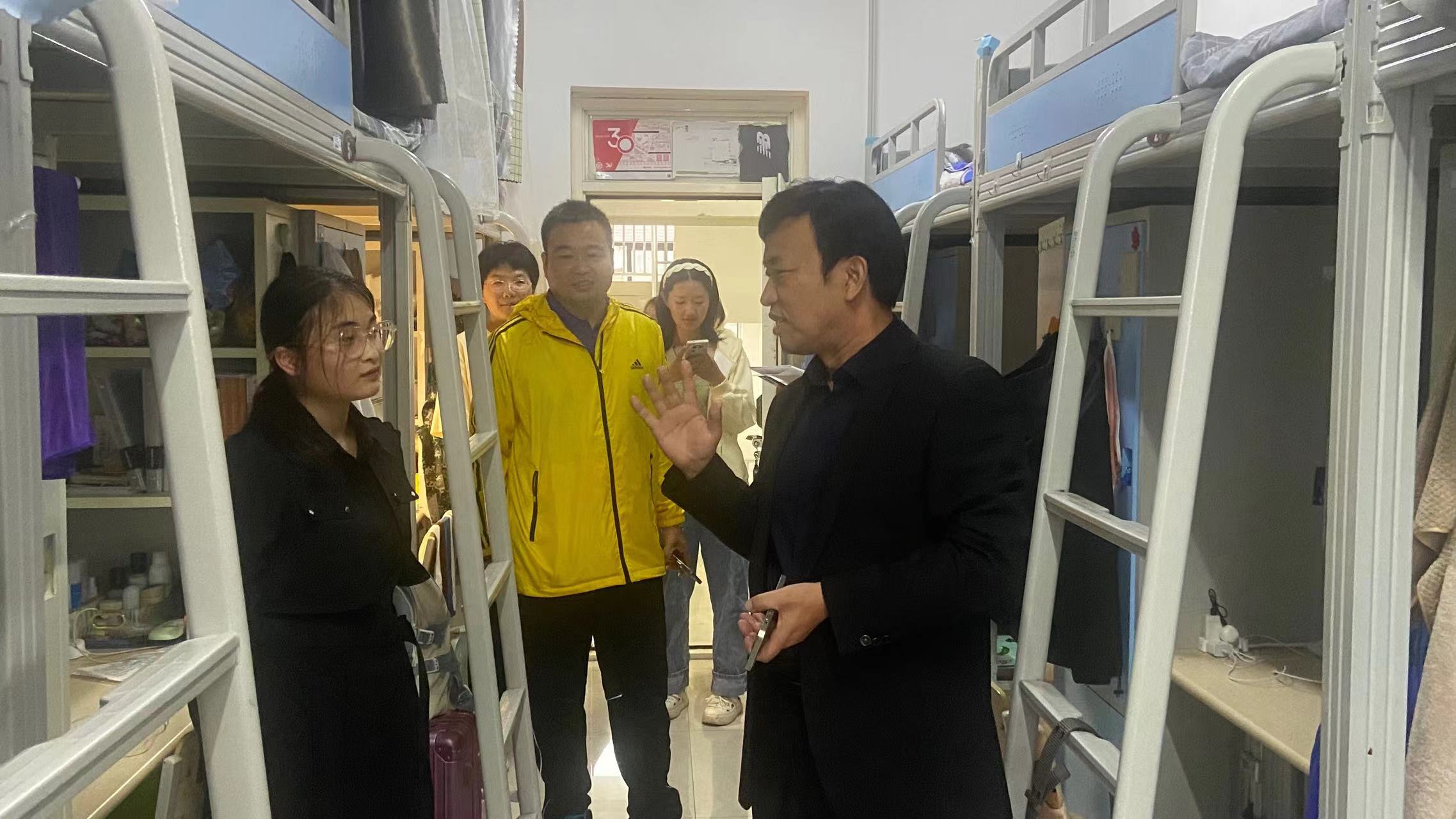 为了解我院新生学习生活情况,切实关心关怀学生成长成才,9月25日,国产欧美一区二区院长高建立教授、党委副书记卢忠雷带领辅导员老师们深入2023级新生宿舍开展“双节”假期期间的学生安全文明教育及宿舍安全风险隐患排查。