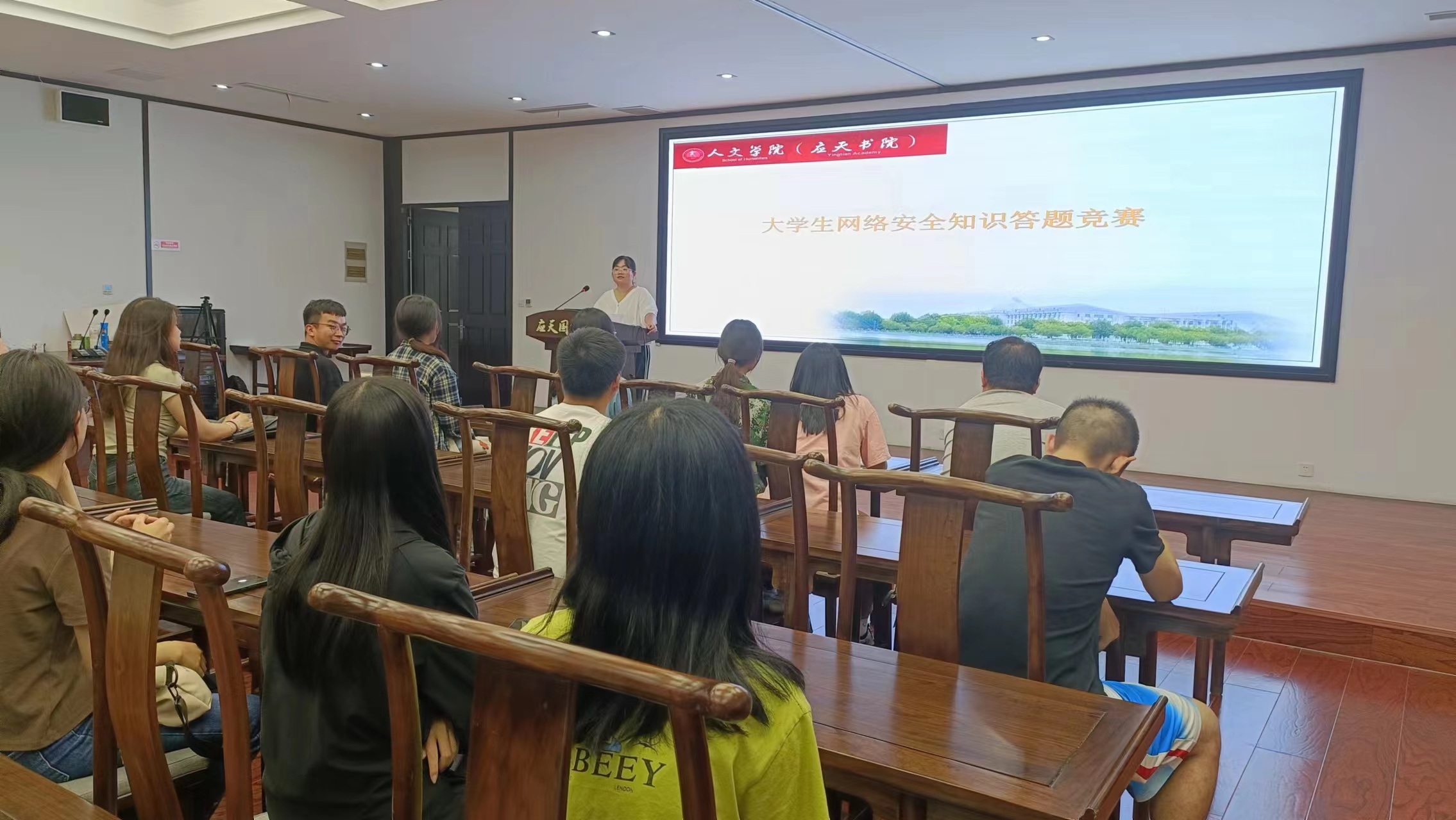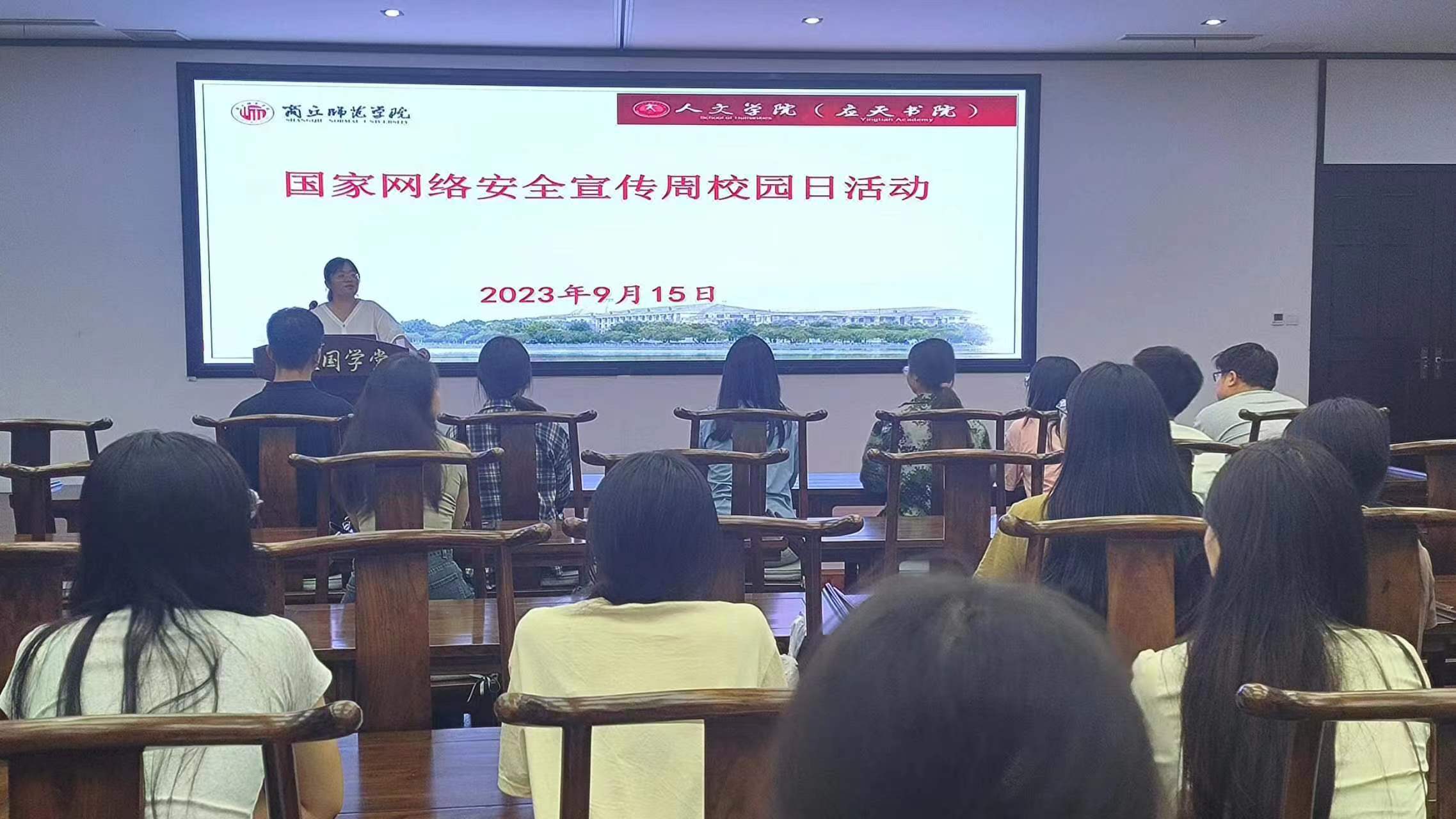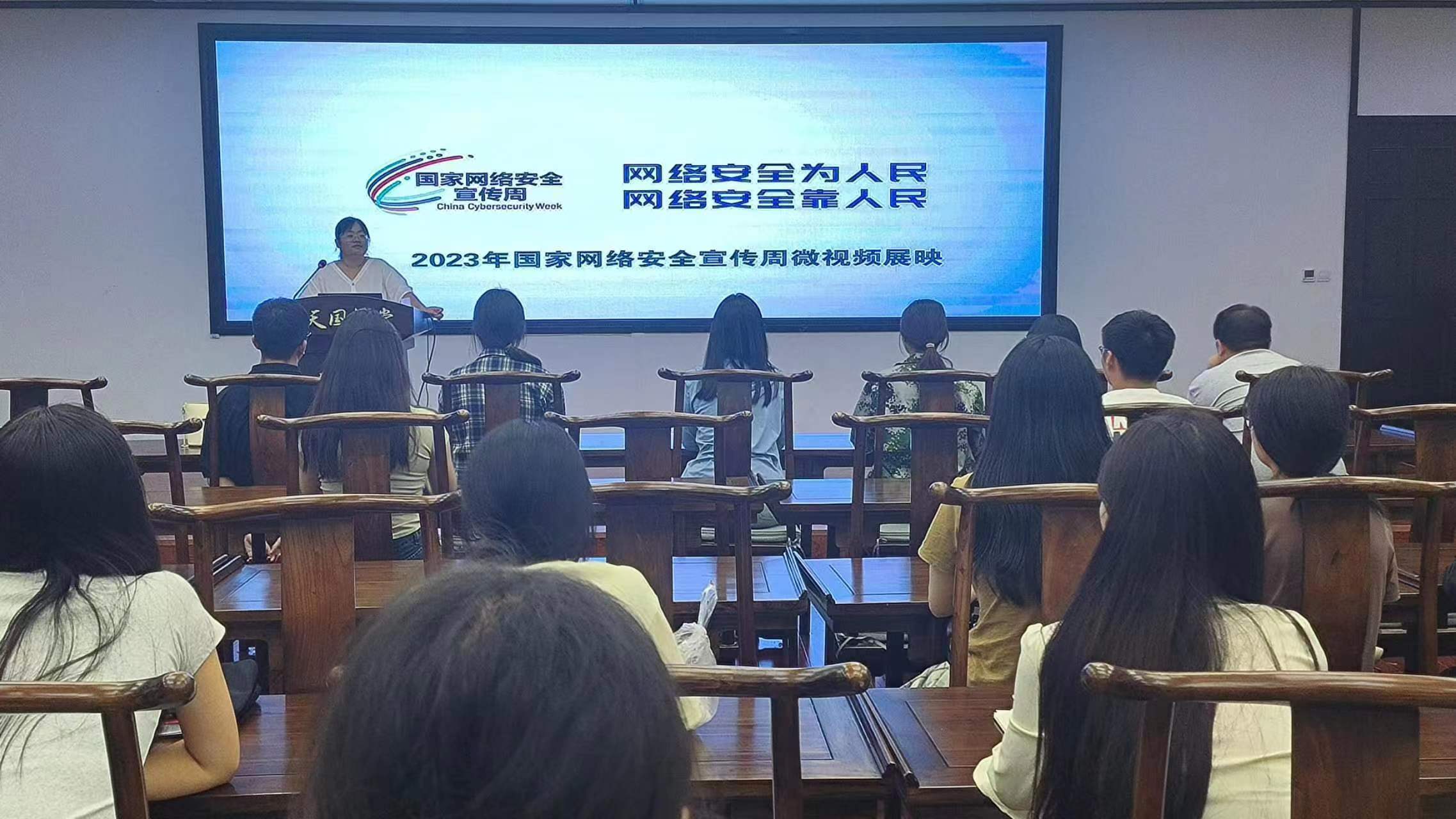 学院通过线上线下相结合的方式,加强网络安全主题宣传教育。线上通过学院微信公众号,在线宣传网络安全相关的政策法规、网络安全知识和个人信息保护、防诈骗相关内容;组织2023级全体新生在汉梁楼国学堂集中观看2023年国家网络安全宣传周微视频,参与全国大学生在线网络安全知识答题竞赛。其他年级学生以班级为单位,开展网络安全主题班会,围绕网络行为安全、网络交易安全、网络交友安全等内容,引导学生严格遵守法律底线,自觉抵制网络不良信息。