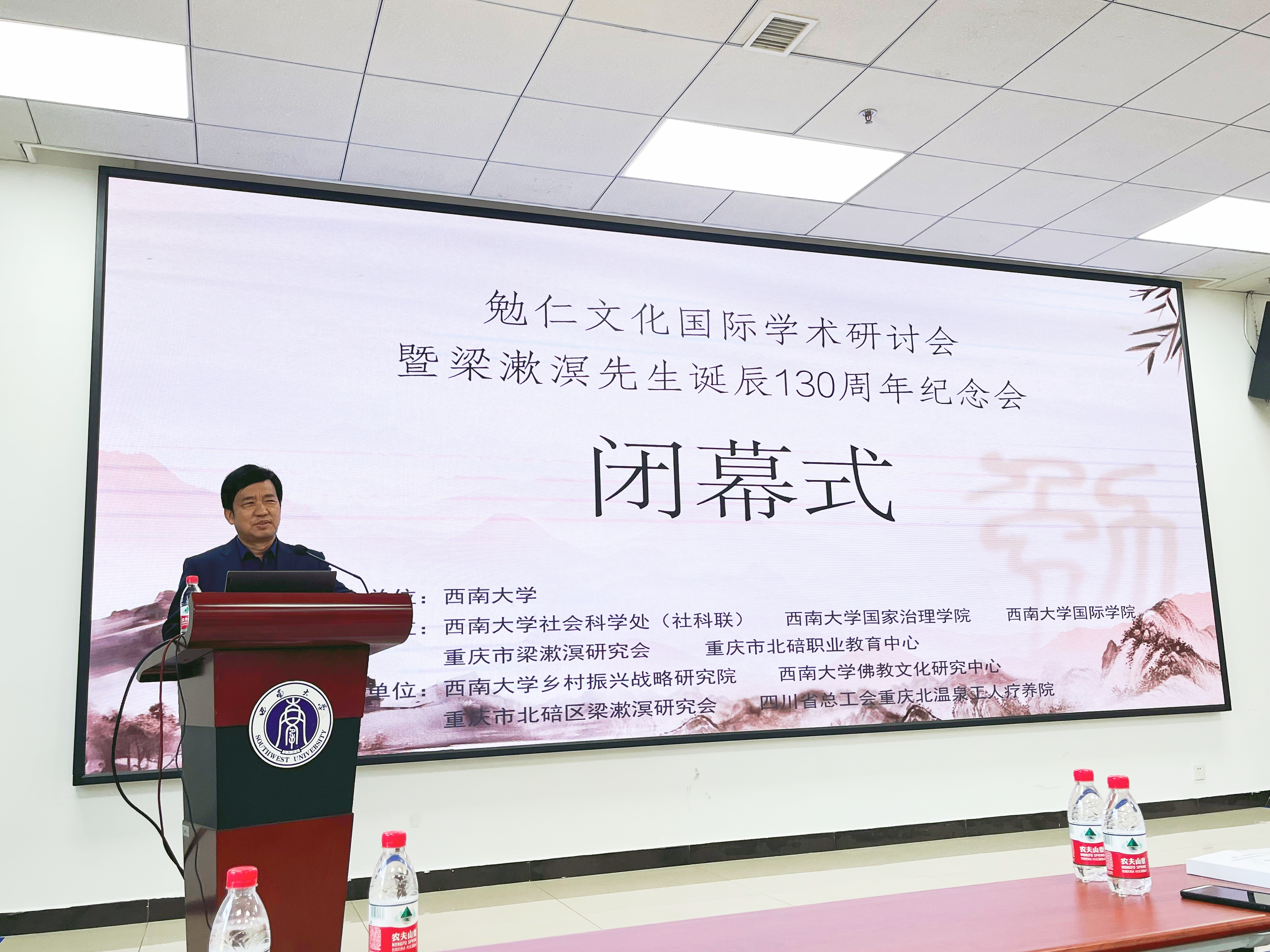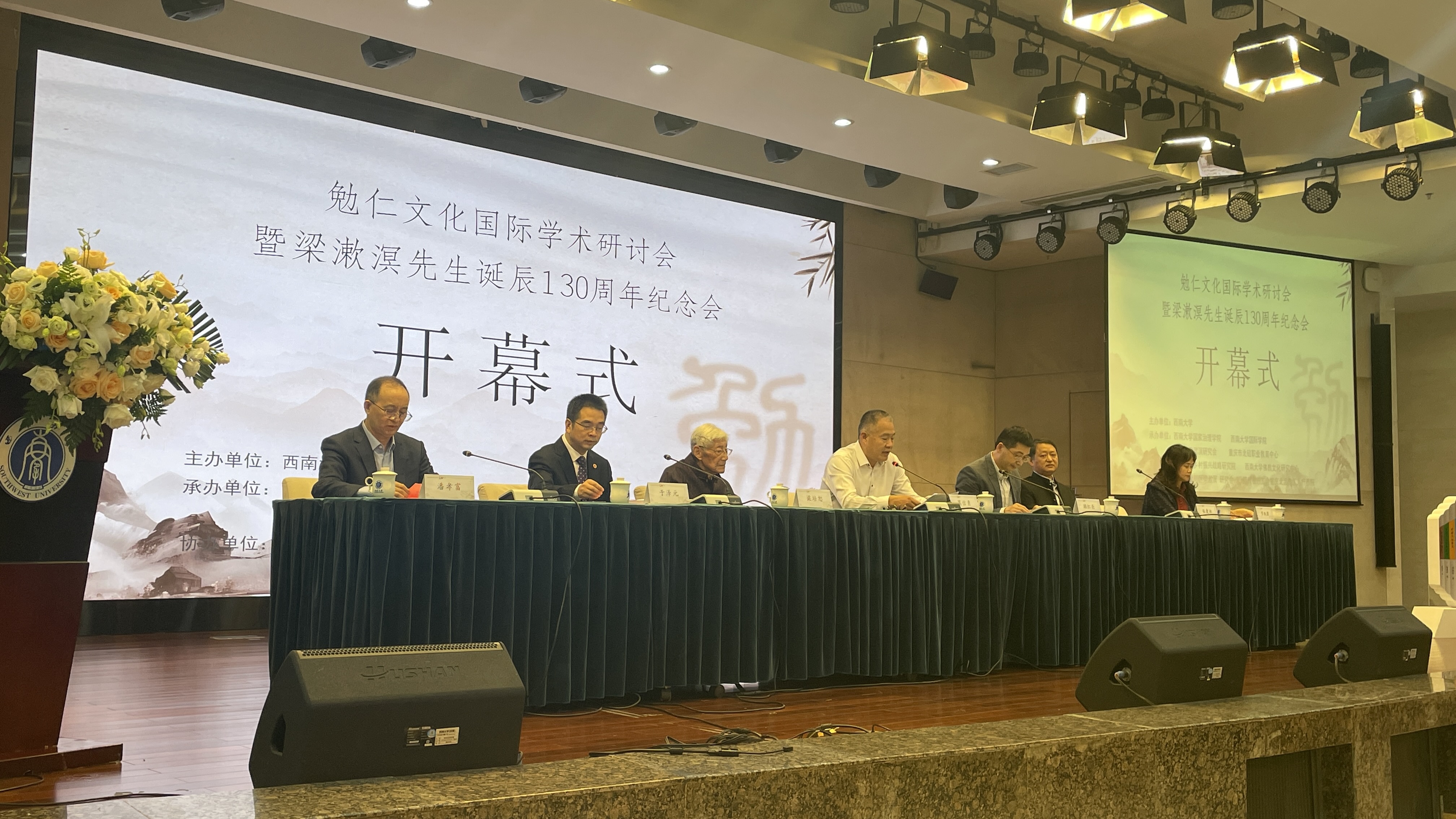 2023年10月13-16日“勉仁文化国际学术研讨会暨梁漱溟先生诞辰130周年纪念会”在重庆北碚西南大学隆重举行,来自美国、加拿大、俄罗斯、台湾地区以及中国社会科学院、北京大学、中国人民大学、华东师范大学、武汉大学、厦门大学、山东大学、四川大学、中南大学、暨南大学、上海大学、重庆大学等海内外近百名专家学者参加了会议,高建立院长应邀参加了研讨会和纪念会。