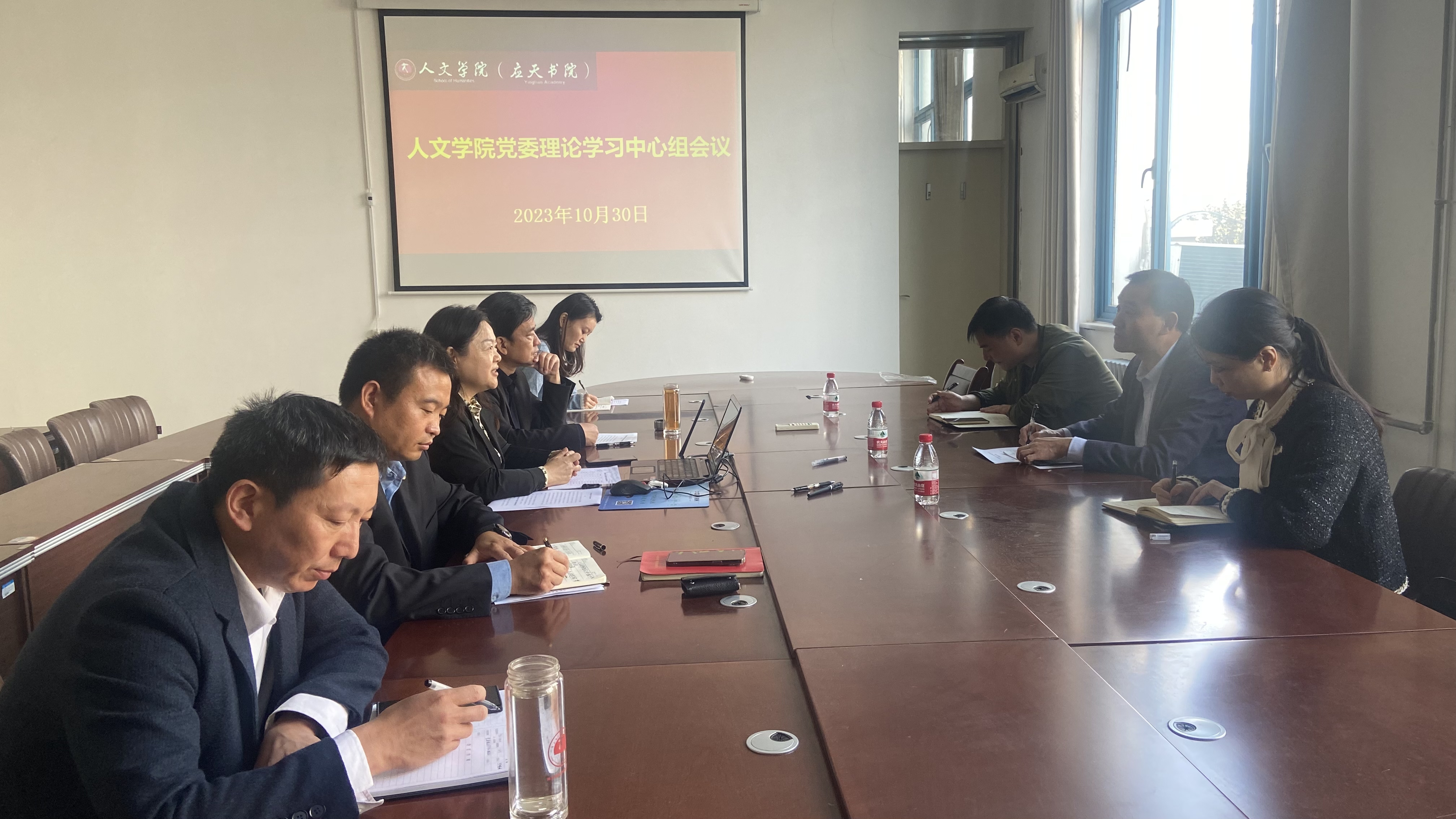 10月30日上午,国产欧美一区二区在汉梁楼208会议室召开党委理论学习中心组会议。校党委巡学旁听第三组成员数学与统计学院党委书记孟学超、校党委组织部副部长曹松梅、校党委统战部民族宗教科科长张玉盺,国产欧美一区二区党政班子成员、团委书记参加会议。会议由学院党委书记陈晓明主持。