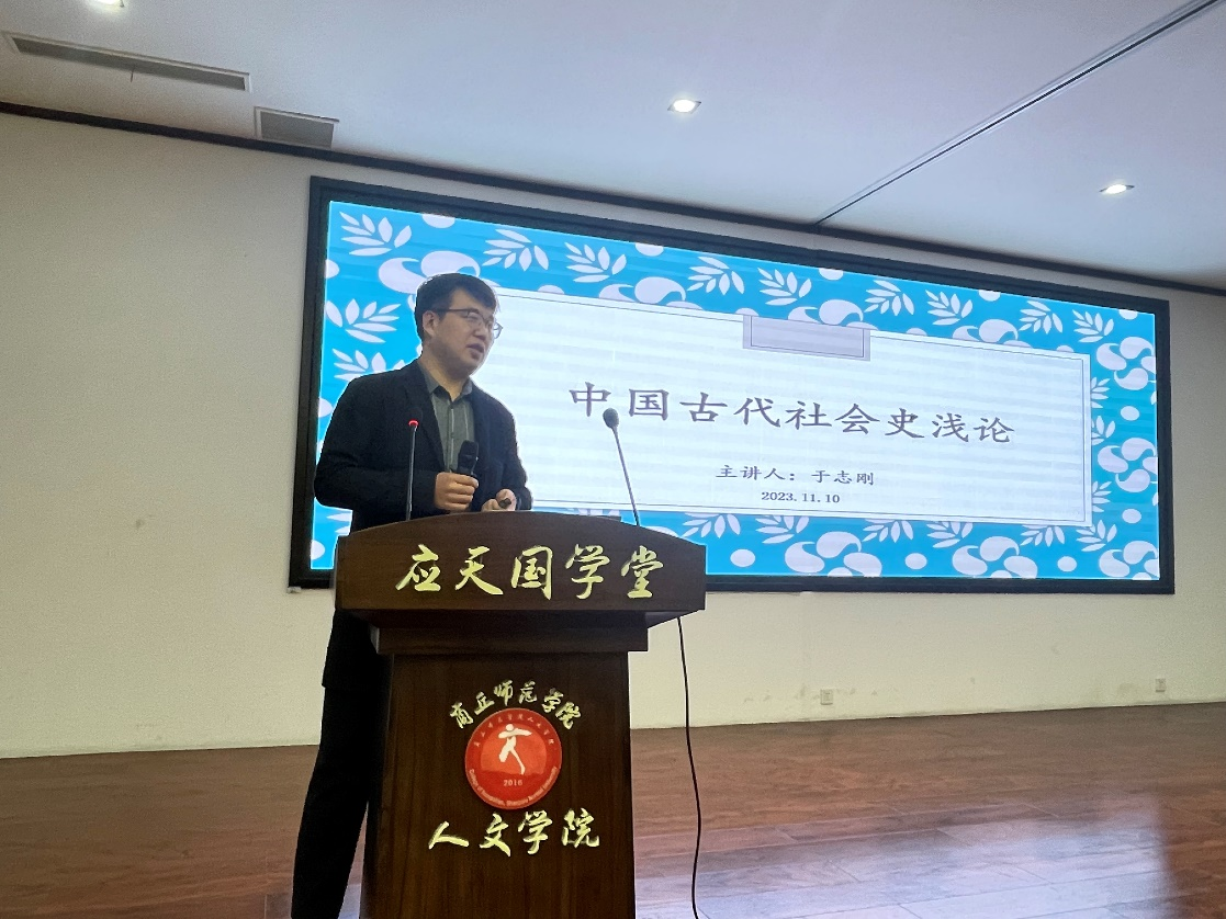 11月10日晚7点,国产欧美一区二区应天周末文化讲坛第三讲在国学堂举行。本次讲座主题是《中国古代社会史浅论》,主讲人为国产欧美一区二区历史系教师于志刚,历史系大一、大二、大三年级共百余名同学参加。