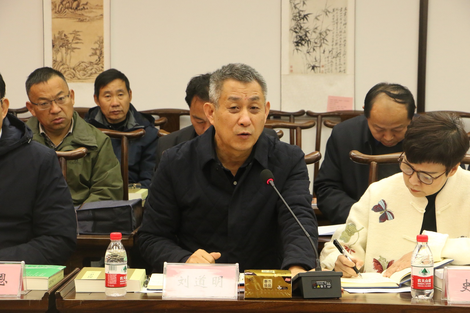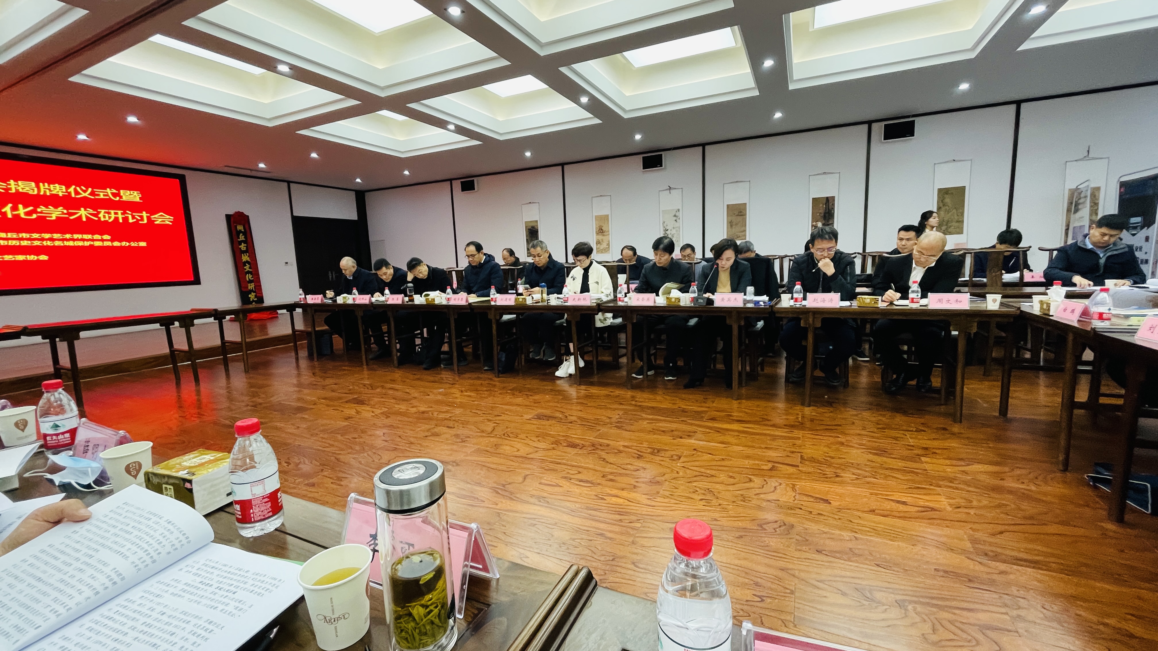 与会代表合影留念后,大会分两组进行学术研讨,40余名领导及专家学者就古城历史、建筑艺术、家族文化、民俗民风、文物考古、书院文化、殷商文化、古城保护与开发等进行了研究,大家各抒己见、畅所欲言,新观点相互碰撞、新思想彼此分享、新认识共同提升,炒制了一席丰富的古城文化盛宴。