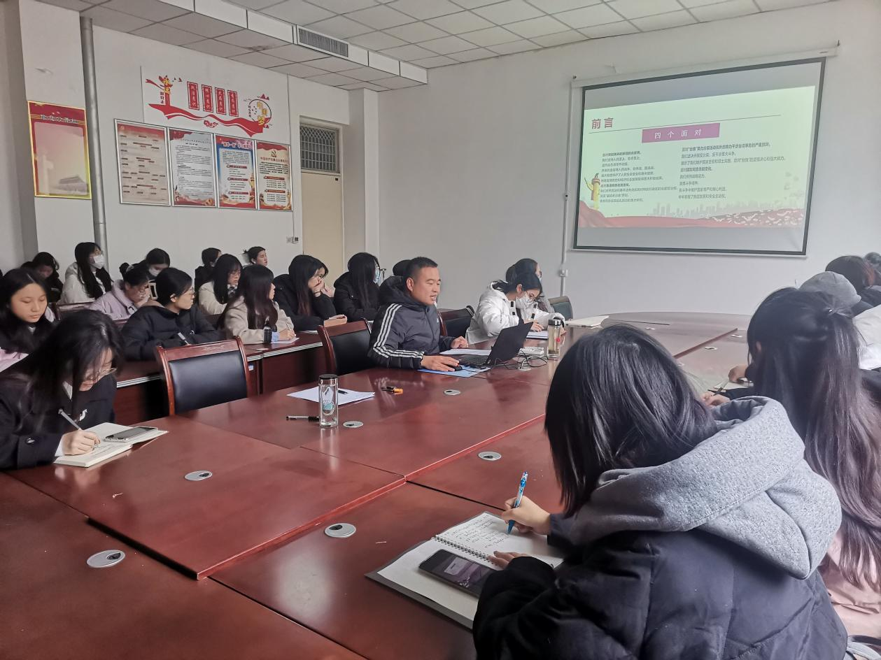 学院党委副书记卢忠雷以“以中国式现代化全面推进中华民族伟大复兴”为题,从“中国式现代化、中华民族伟大复兴、以中国式现代化全面推进中华民族伟大复兴”三个方面,论述了以中国式现代化全面推进中华民族伟大复兴的重要意义,并叮嘱与会预备党员,及时学习领悟党的二十大精神,在日常学习和生活中,始终以党员标准严格要求自己,始终做好党员模范带头作用,始终保持党员先进性。