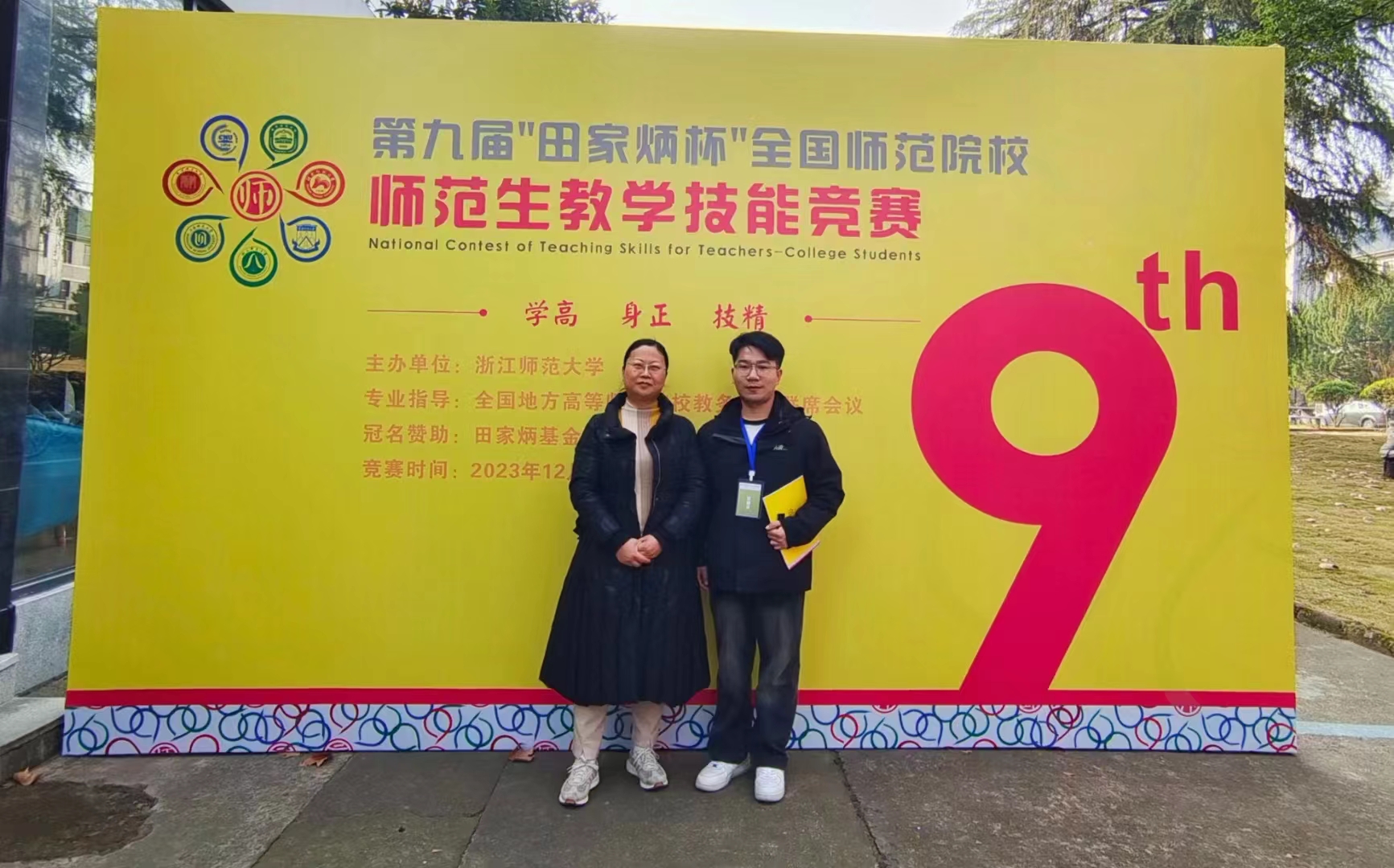 2023年12月29日—31日,第九届“田家炳杯”全国师范院校师范生教学技能竞赛决赛在浙江师范大学举行。由白茹冰、薛立芳、魏清彩老师指导的历史学专业2021级师范生陈佳伟在现场决赛中以优异的成绩荣获全国一等奖。