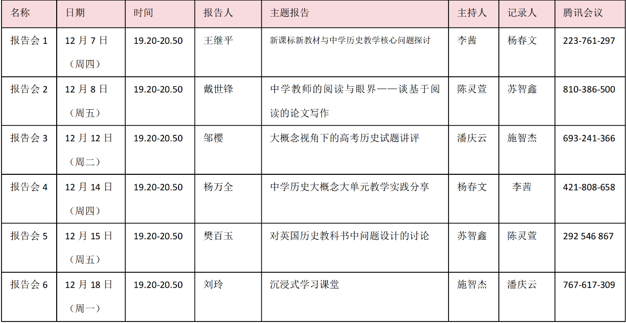 12月7日-18日,历史学科工作室开展了种子教师理论学习培训,教学名师与教育专家围绕历史学科教学前沿理论、核心问题、阅读与论文写作、大单元教学实践、沉浸式学习课堂、高考试题评讲、问题设计等主题为广大师生带来一场学术盛宴。讲座后专家与工作室成员进行了深入的交流与互动,并对即将参加“田家炳杯”赛决赛的工作室种子学生、商丘师范学院历史系2021级师范生陈佳伟进行赛前指导。