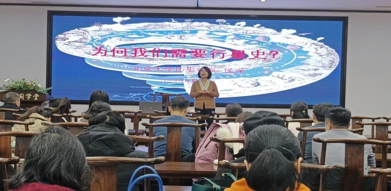 随后,侯深教授向听众们阐释了行星史的撰写基础以及为什么行星史的书写需要历史学者的参与的原因。侯深教授认为,地球行星拥有一部巨大的历史,人类历史仅是其中的一个片段。行星史所书写的是一部文化和地球协同演化的历史。正因为文化的演化是这部广阔的演化史中的一个部分,历史学者加入撰写“行星史”被赋予了合法性意义。