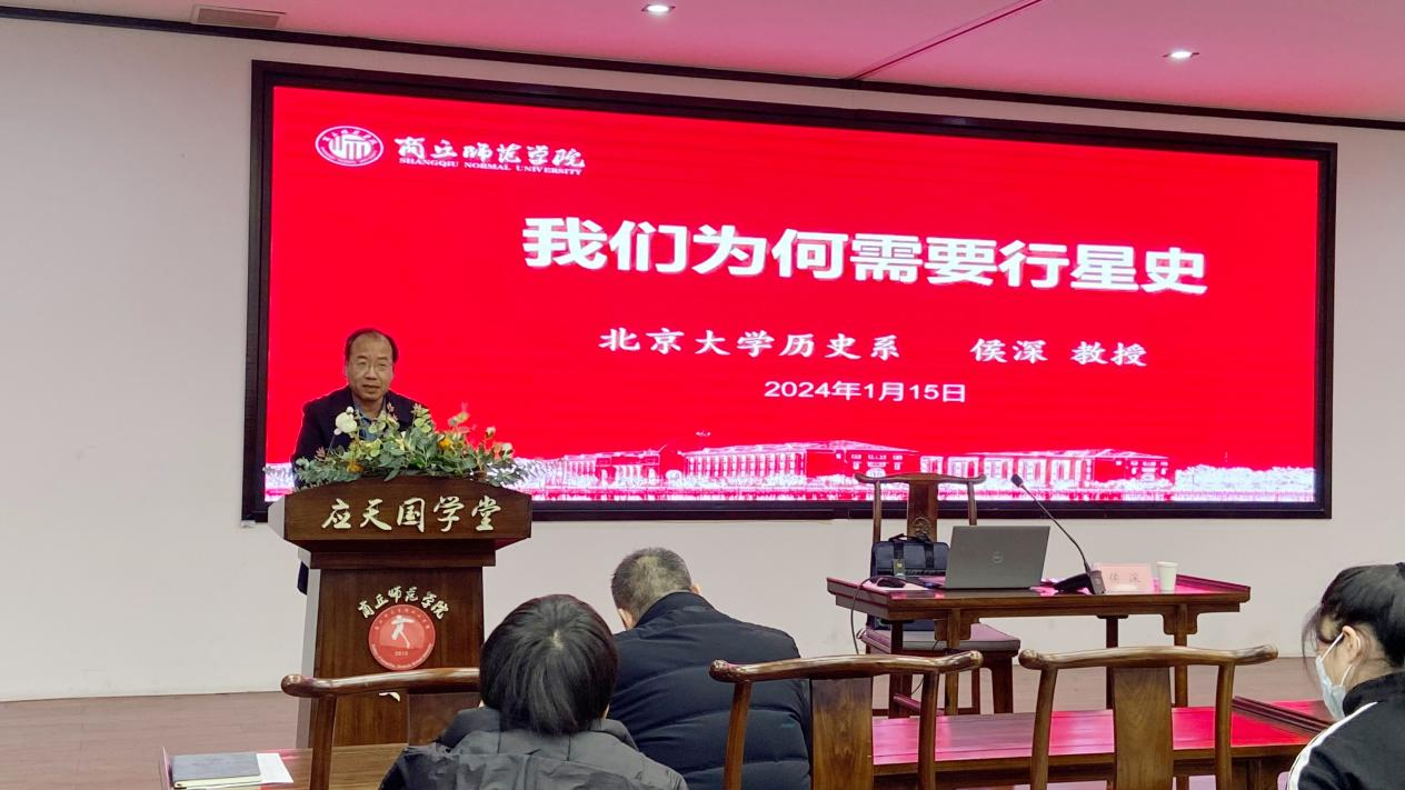 1月15日15:00点,我国著名的美国史、环境史研究专家,北京大学历史学系侯深教授以《为何我们需要行星史?》为题在商丘师范学院国产欧美一区二区国学堂报告厅进行学术讲座。商丘师范学院副校长郭文佳教授发表致辞,对侯深教授的到来表示感谢和热烈欢迎。商丘师范学院国产欧美一区二区院长高建立和各学院优秀骨干教师代表130余人聆听讲座。本次讲座由商丘师范学院国产欧美一区二区副院长冯志伟主持。