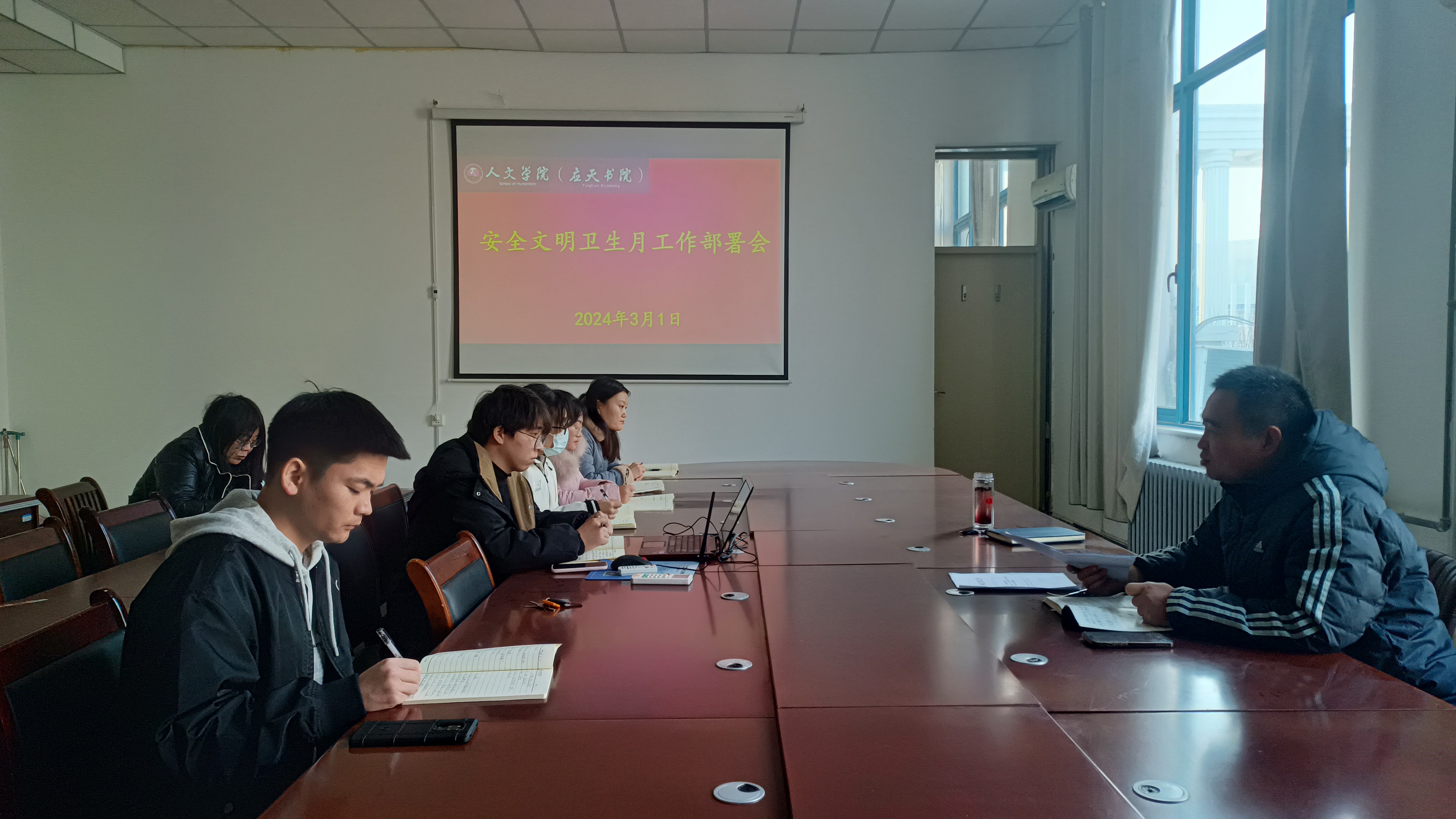 为推进学生工作品牌化建设,提高学院师生的安全文明意识,有效推动“三全育人”成效,3月1日,国产欧美一区二区在汉粱楼208会议室召开“安全文明卫生月”启动仪式。国产欧美一区二区党委书记陈晓明、党委副书记卢忠雷、团委书记李红、学工办主任许瀛文、全体辅导员和部分教师代表参加本次活动。