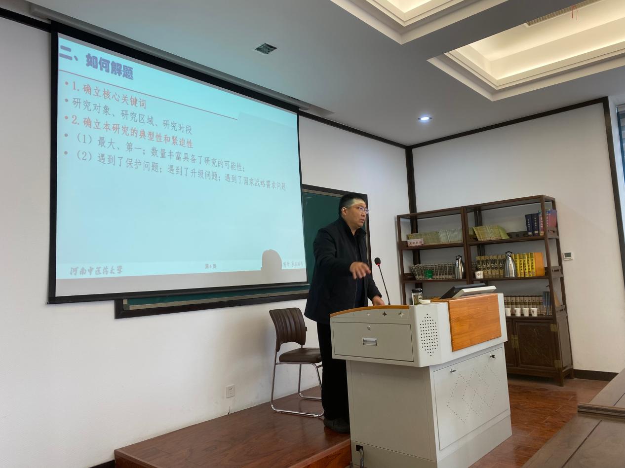 3月6日上午,河南中医药大学博士生导师刘继刚教授应邀在汉梁楼225会议室为国产欧美一区二区进行国家社科基金项目申报培训与指导,此次培训活动由国产欧美一区二区副院长冯志伟主持,人文、传媒等学院申报2024年国家社科基金项目的科研人员参加了培训。