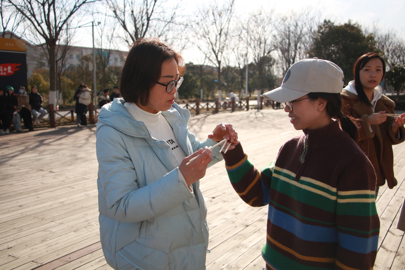 在第三环节的夹乒乓球活动中,各组教师成员全神贯注,用筷子将乒乓球稳稳地放进筐中,完成了默契的团队配合。此次活动中处处见笑容,时时闻笑声,大家尽情享受活动带来的欢乐。