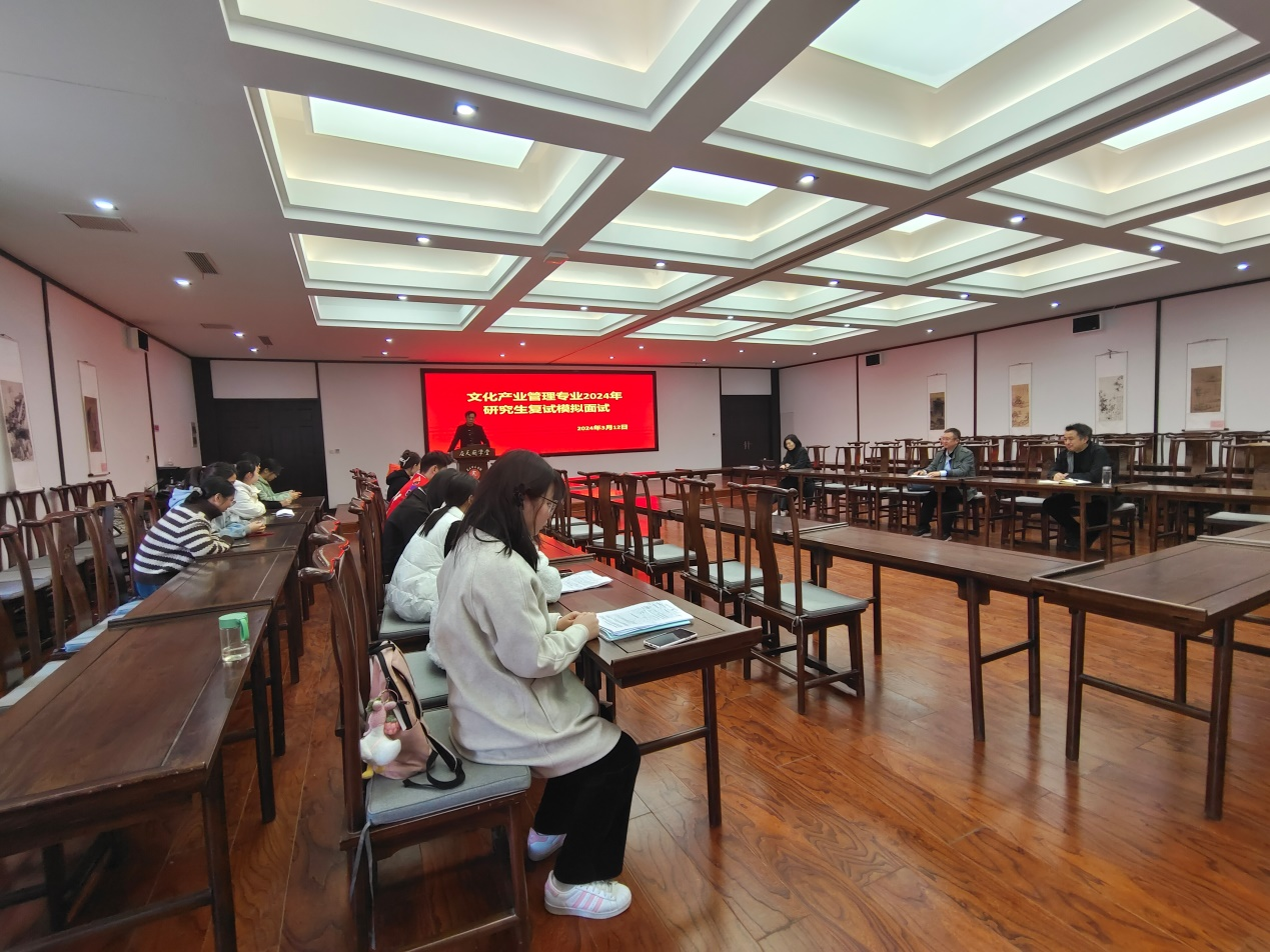 为让文化产业管理专业学子更快速、真实、直接、全面地了解考研复试面试程序,2024年3月12日下午,文化产业管理系在国学堂开展2024届考研学子复试演练活动,王传奇、张优军、孙佳和赵亮参加活动,为考研学子现场提供复试面试指导。