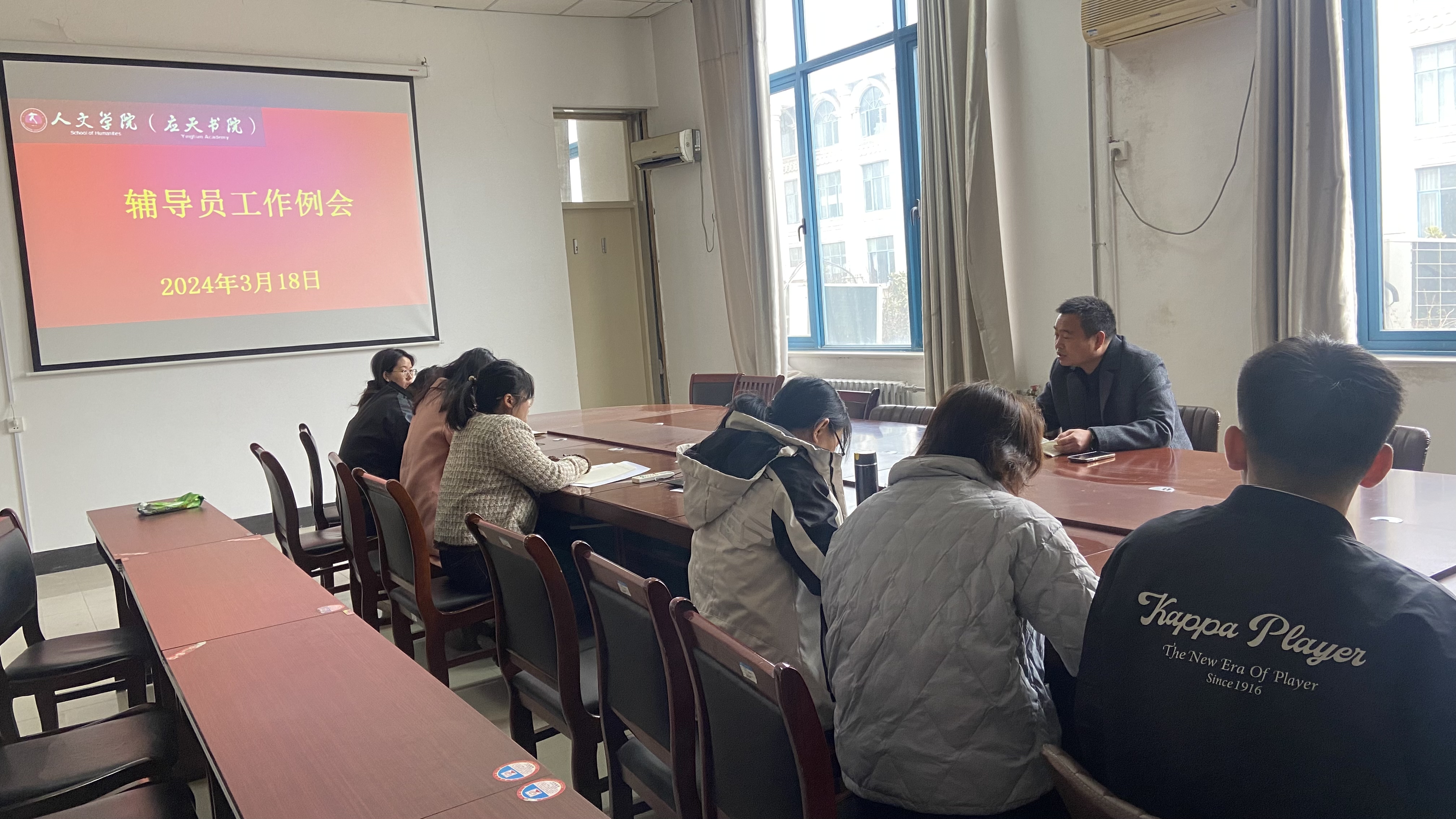 为进一步加强学生管理工作,3月18日上午,国产欧美一区二区在汉梁楼208会议室召开辅导员工作例会。会议由学院党委副书记卢忠雷主持,全体辅导员参会。