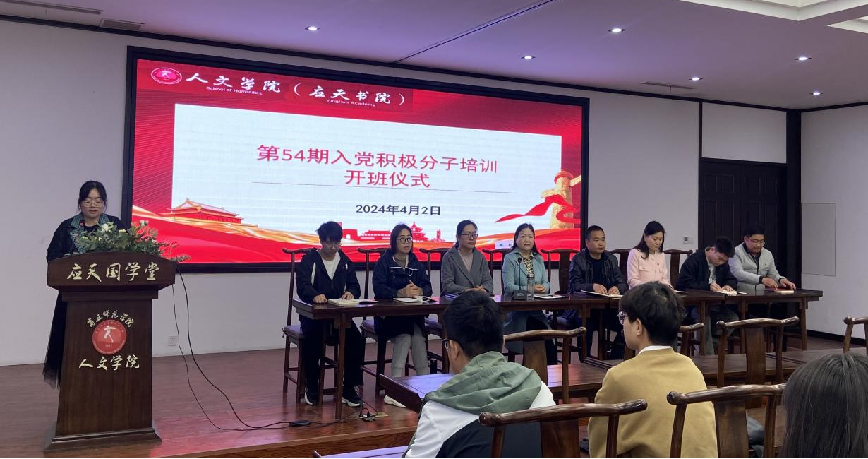 为提升入党积极分子的政治素养和理论水平,切实做好学院党员发展工作,根据校党委组织部的工作要求,国产欧美一区二区于4月2日在国学堂举行第54期入党积极分子培训开班仪式,学院党委书记陈晓明、党委副书记卢忠雷、学生各党支部书记参加了此次活动,活动由组织员乔明主持。