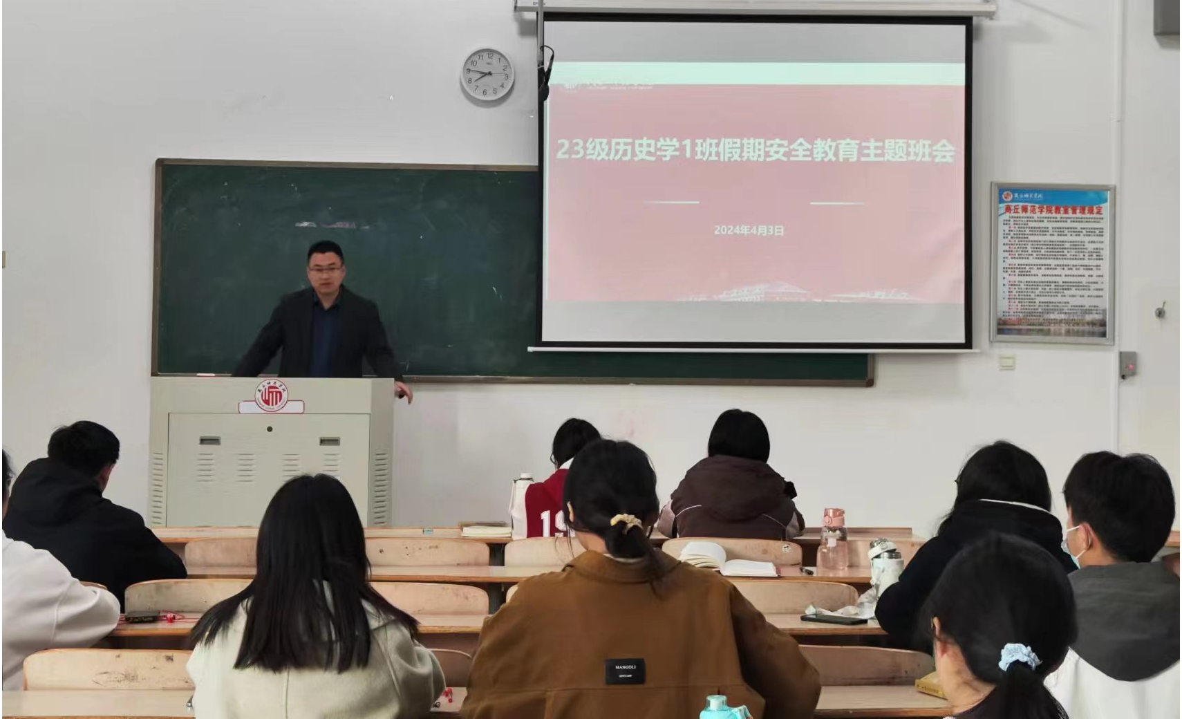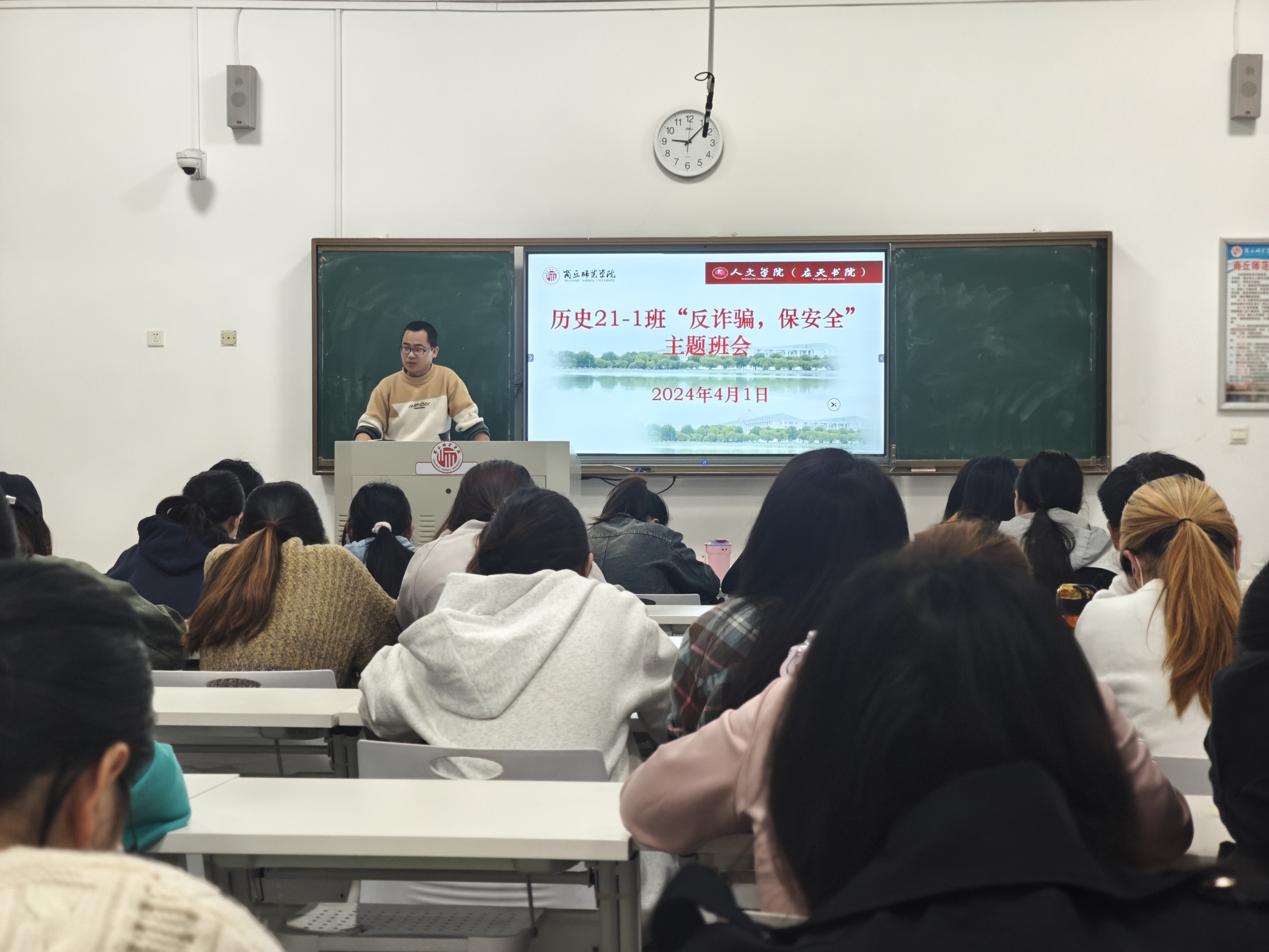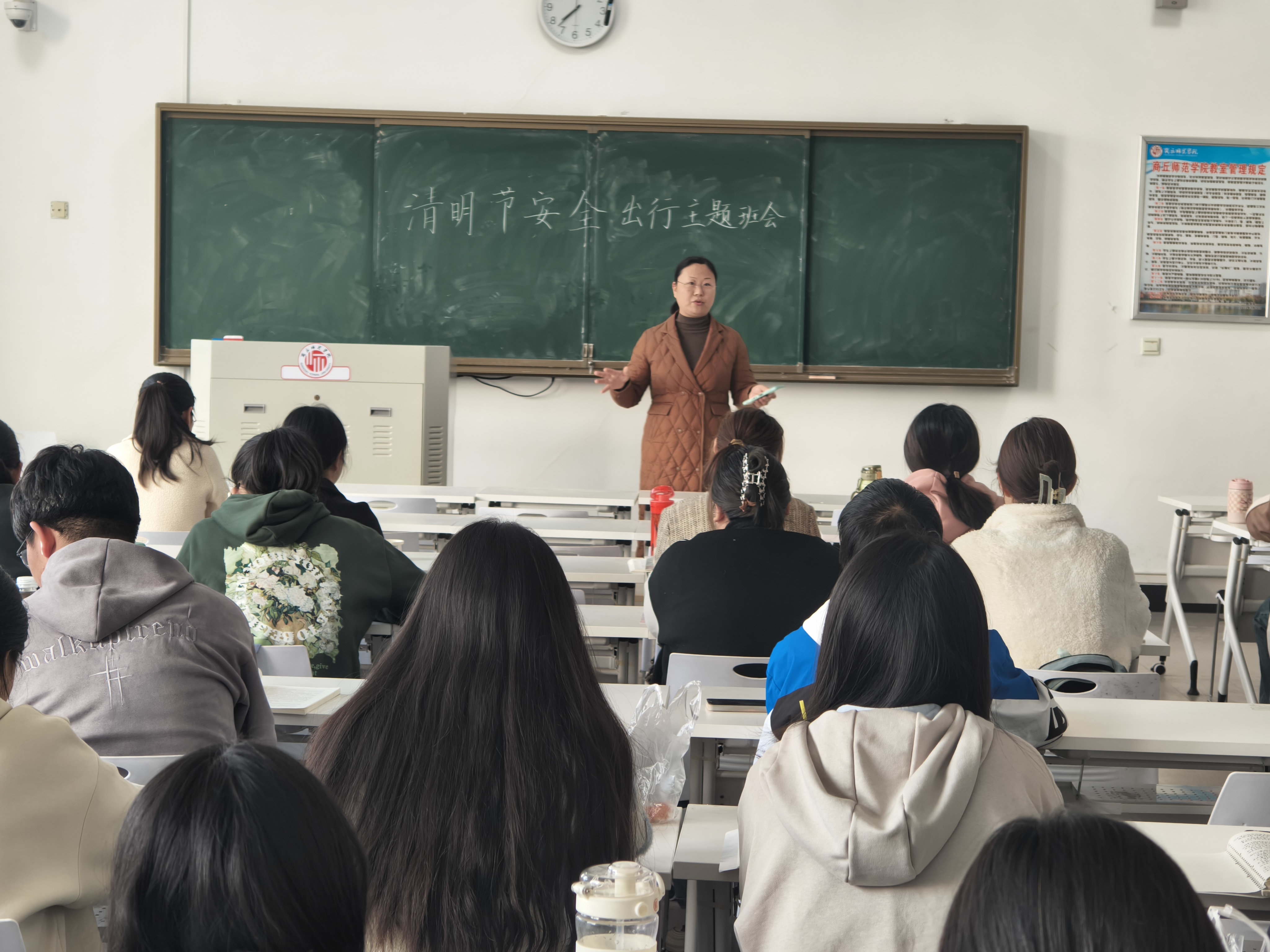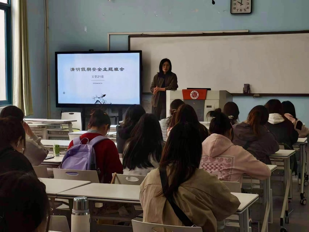 会议围绕清明节假期安排、假期规划、文明祭扫、宿舍安全、人身财产安全、健康饮食等内容对同学们进行了安全主题教育,强调每个人是自己的健康安全的第一责任人,要提升自身的安全意识,加强人身、财产安全。