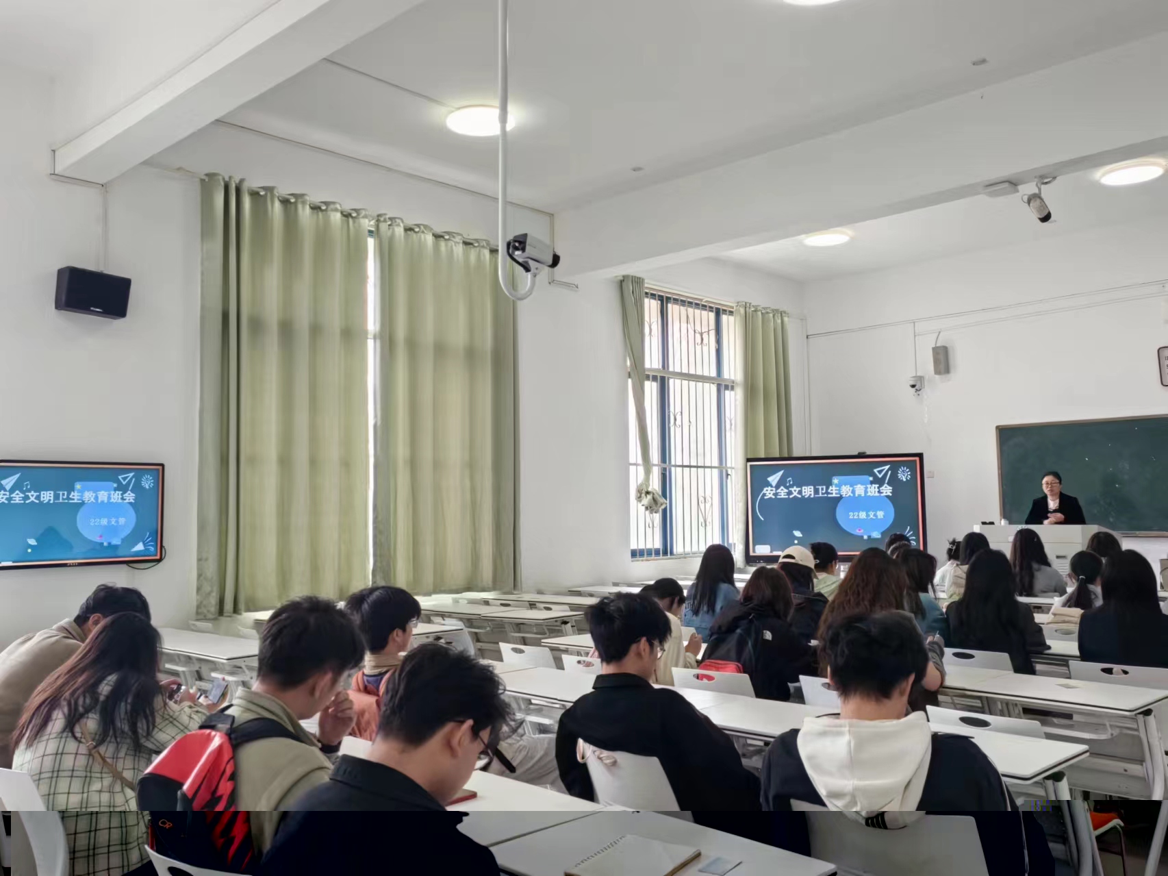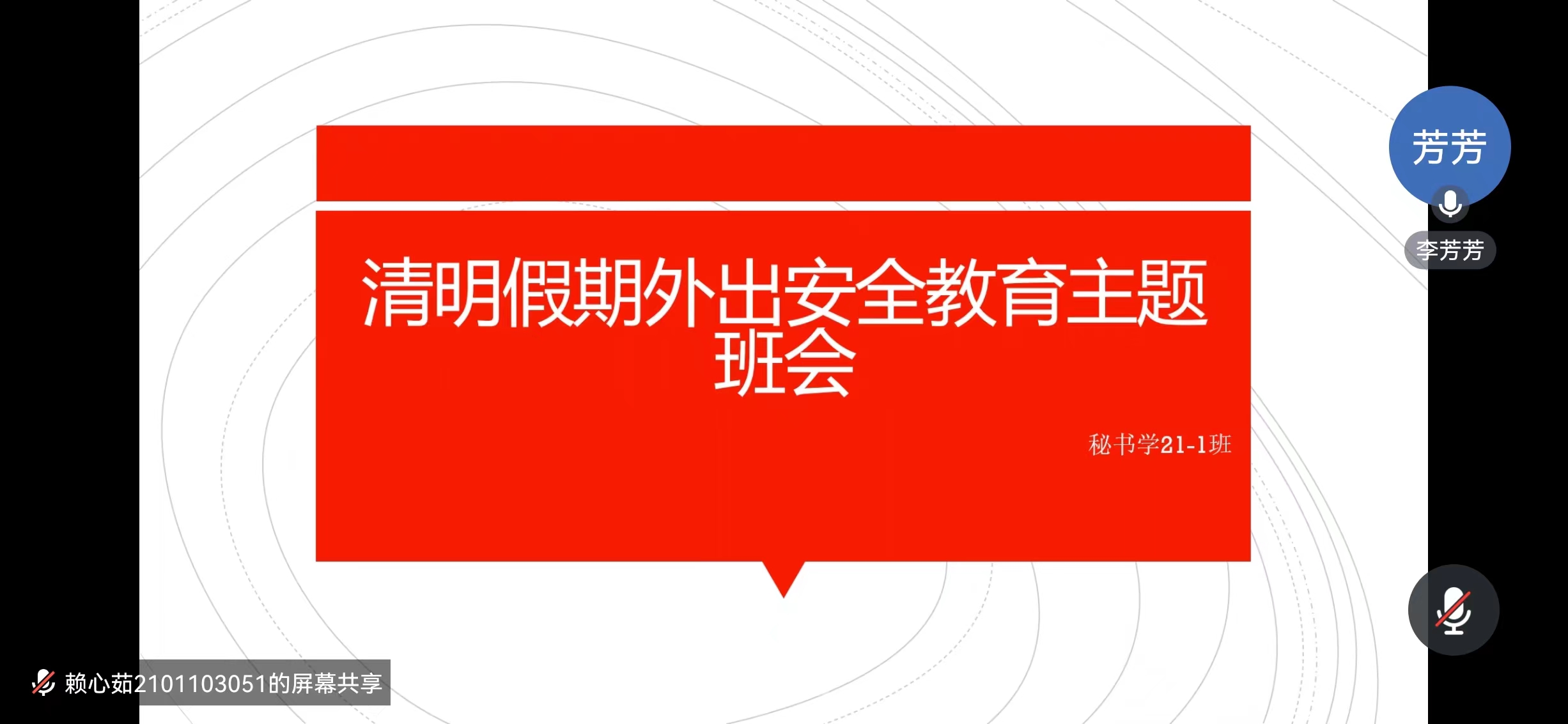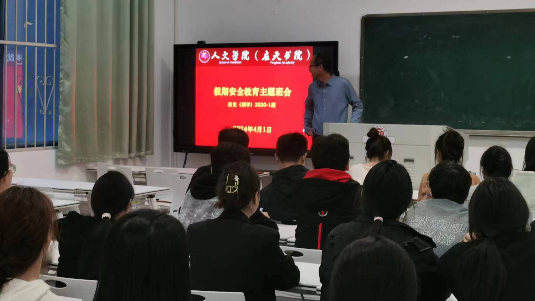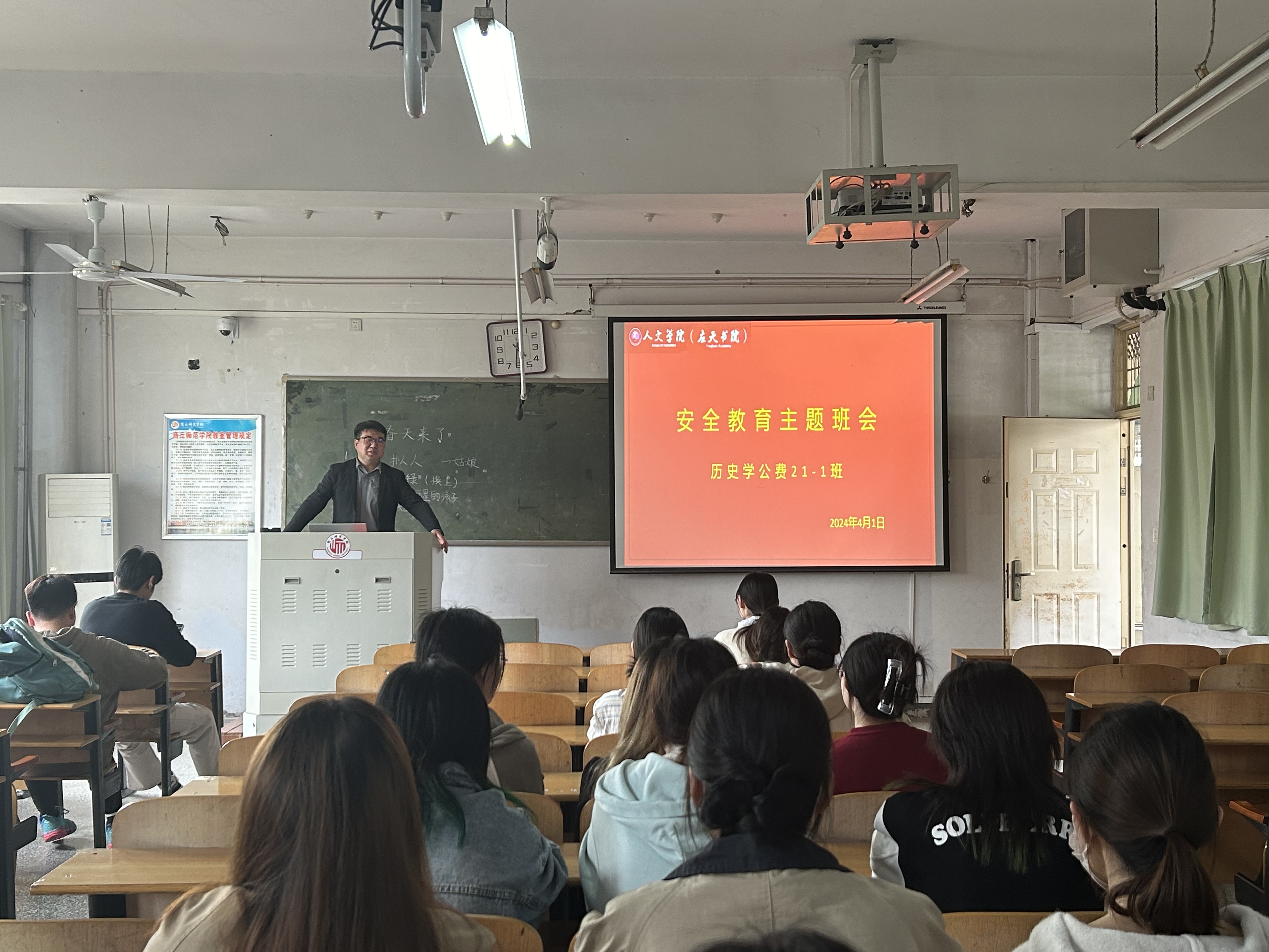 会议围绕清明节假期安排、假期规划、文明祭扫、宿舍安全、人身财产安全、健康饮食等内容对同学们进行了安全主题教育,强调每个人是自己的健康安全的第一责任人,要提升自身的安全意识,加强人身、财产安全。