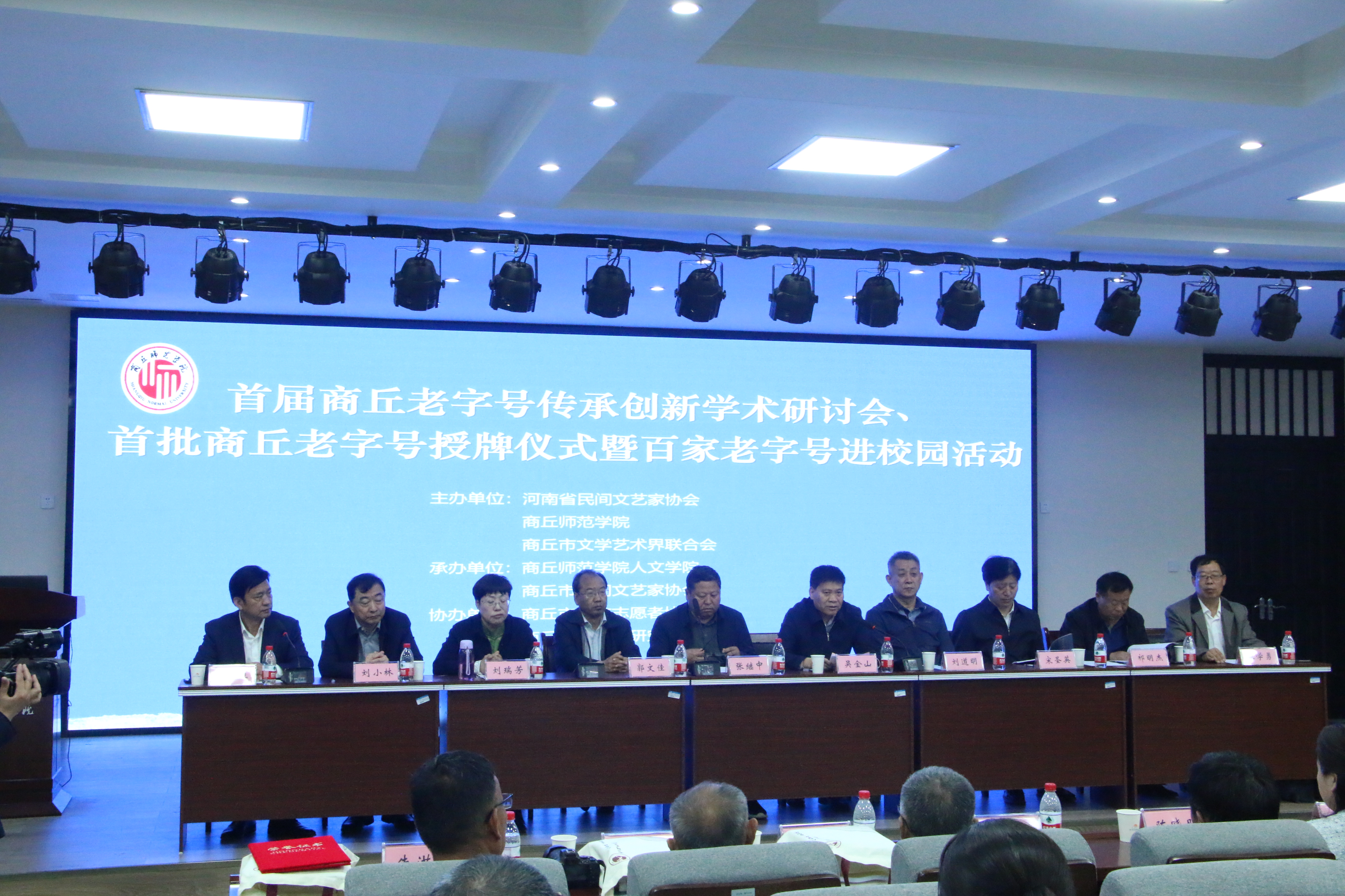 河南省民间文艺家协会副主席张继中、商丘师范学院党委副书记吴金山,商丘师范学院副校长郭文佳,商丘市委宣传部副部长、二级巡视员刘道明,商丘市文联党组书记、主席刘瑞芳,商丘日报社总编辑宋圣英,商丘市文联党组成员、副主席祁明杰,商丘市总工会副主席、商丘市文艺志愿者协会主席刘小林,商丘市新华书店党委书记、总经理王永定,商丘市民间文艺家协会主席张学勇,河南卓源教育集团董事长王佳怡,商丘师范学院国产欧美一区二区党委书记陈晓明及班子成员,商丘市民协部分主席团成员、各县(市、区)民协主席,出席了首批商丘老字号授牌仪式,部分专家学者、教师代表以及首批76家商丘老字号代表参加了会议。