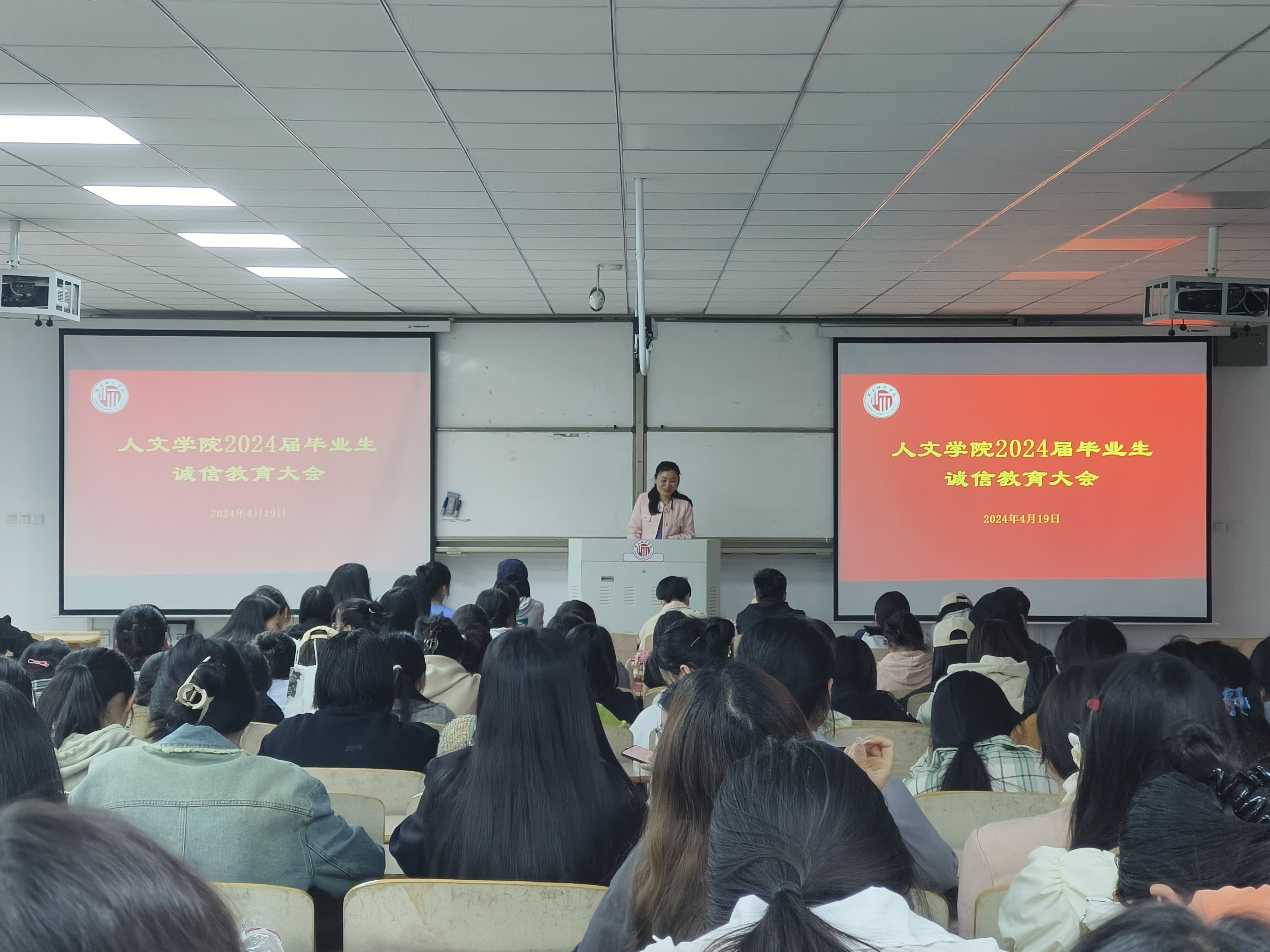 为加强毕业生诚信教育,引导学生在即将步入社会之际,坚守诚信底线,树立良好形象,4月19日,国产欧美一区二区在行方楼118教室召开2024届毕业生诚信教育大会。会议由辅导员李红老师主持,2020级汉语言文学、秘书学专业全体学生参加。