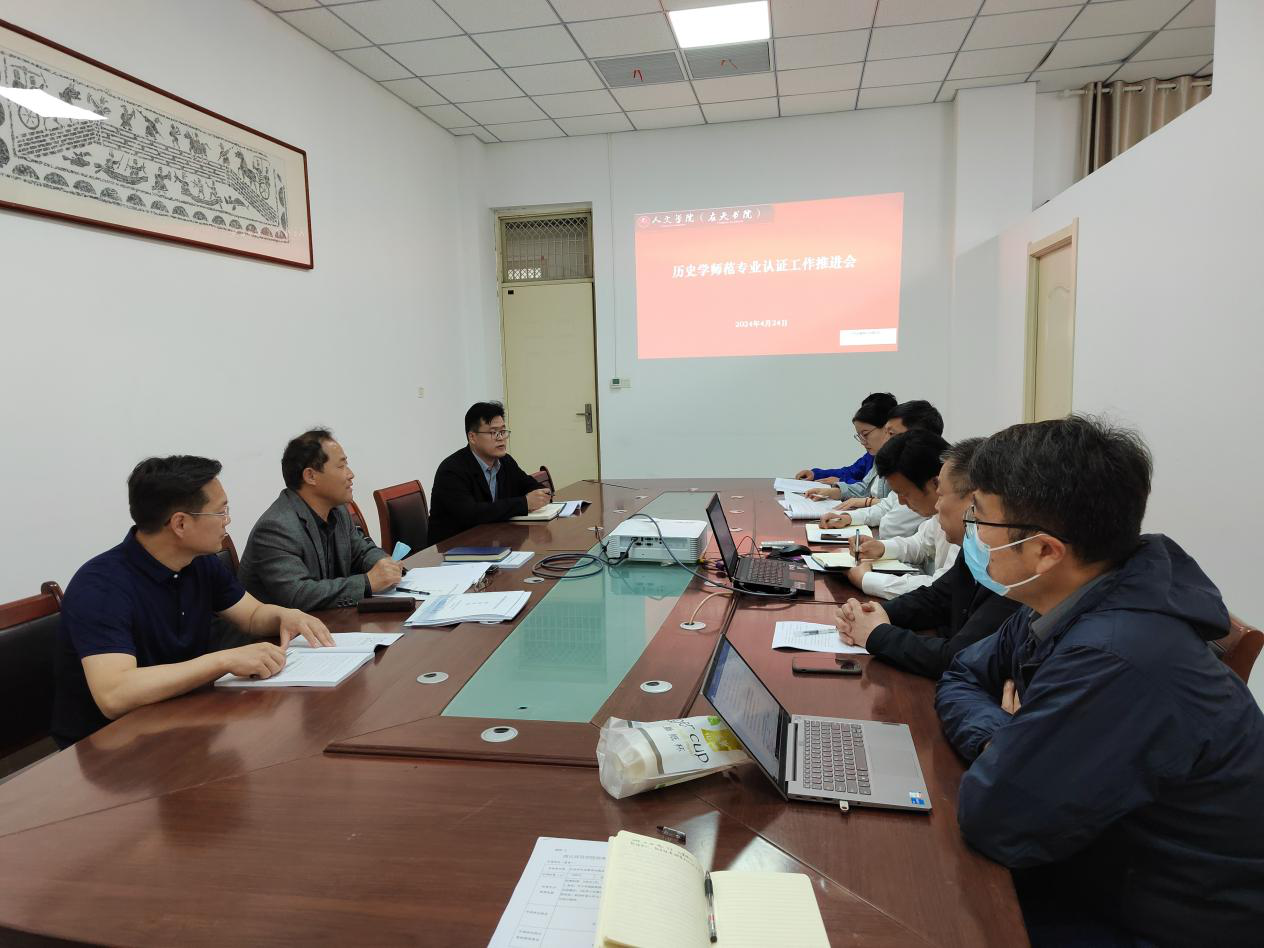 副院长李卫军、冯志伟以及历史学系主任薛立芳及专业教师分别就认证工作的具体进展情况与现阶段存在的主要问题进行汇报。孟主任充分肯定了国产欧美一区二区历史学师范专业认证工作取得的成绩,并对下一步自评报告提交、专家进校等工作作出具体指导。