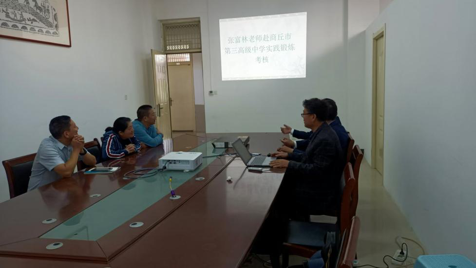 为全面检查教师赴企事业单位实践锻炼成果,9月21日,商丘师范学院国产欧美一区二区在汉梁楼212会议室对实践锻炼期满教师张富林进行终期考核。学院副院长冯志伟、李卫军、教师陈功文、李艳丽、赵鹏参加此次考核会。会议由副院长李卫军主持。