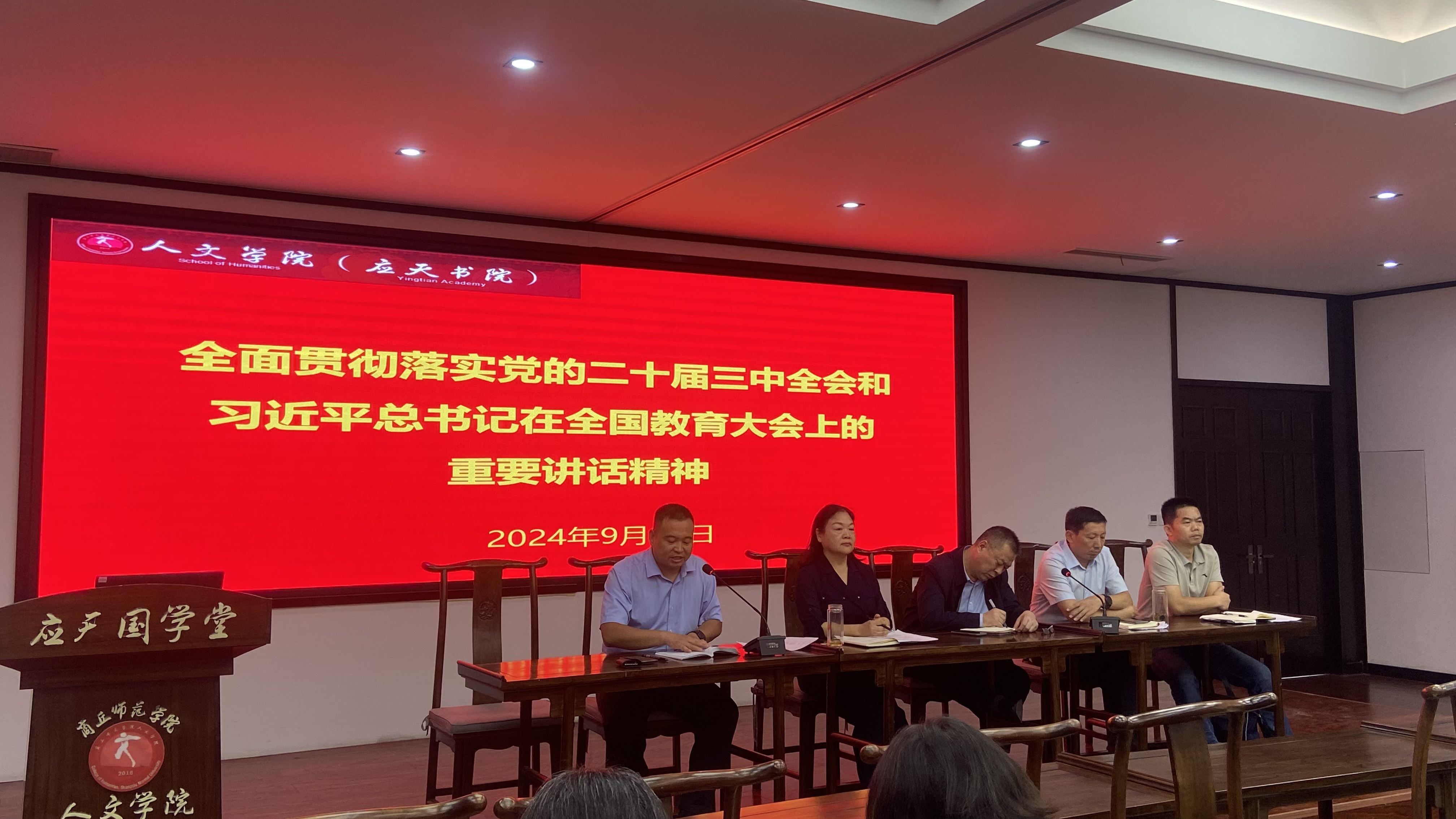 为深入学习贯彻党的二十届三中全会精神和全国教育大会精神,提升学院教育教学管理工作质量,9月27日下午,国产欧美一区二区在汉梁楼国学堂召开专题学习会。学院党委书记陈晓明、党委副书记卢忠雷、副院长冯志伟、李卫军和刘万华出席会议,全体教职工参会。会议由陈晓明主持。