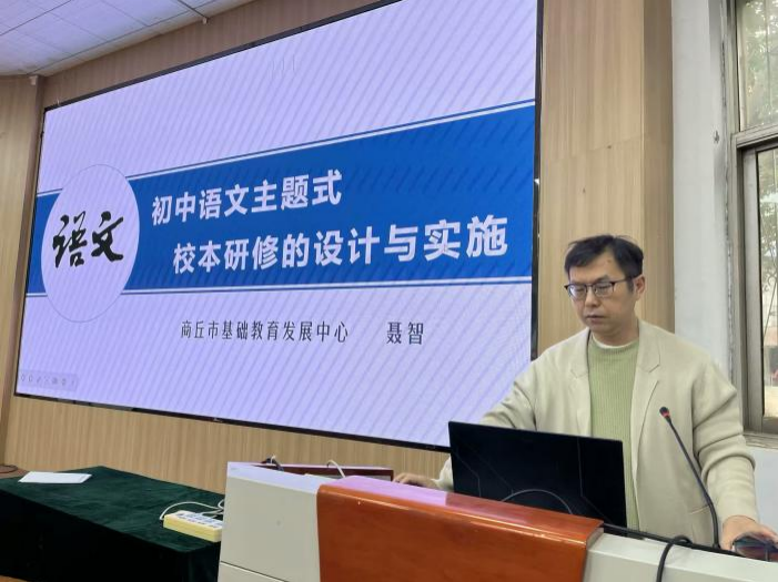 10月16日,中小学正高级教师、中原名师、河南省特级教师、省劳动模范、省教育教学专家、省师德先进个人聂智老师受邀,为国培骨干教师能力提升初中语文班,潢川、西华、项城班的学员在商丘师范学院文化路校区物理报告厅举行专题讲座--《初中语文主题式校本研修的设计与实施》,传授初中语文校本研修经验,为学员指点迷津。