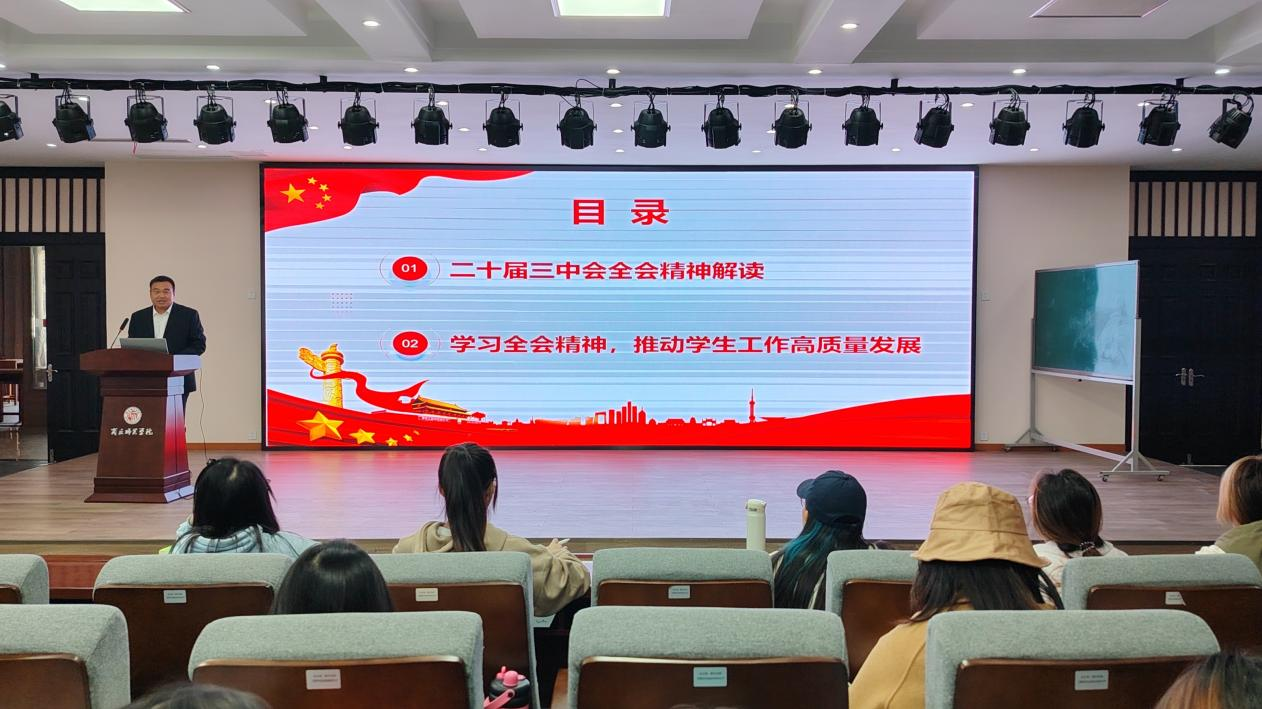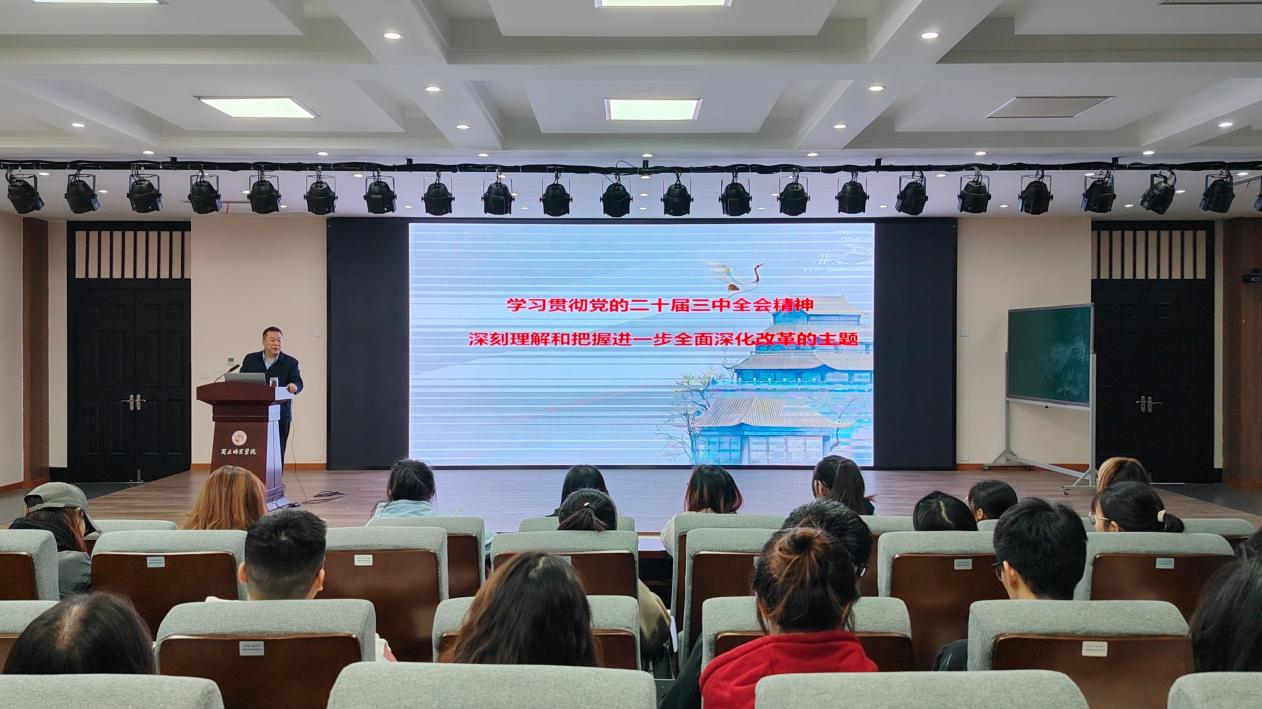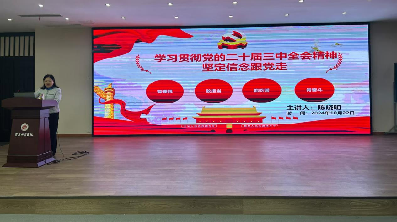 10月24日,学院党委副书记卢忠雷以《党的二十届三中全会精神解读》为题从学生工作角度出发为入党积极分子们讲授了一堂精彩的党课。结合学生学习、生活,卢忠雷强调作为入党积极分子一是要勤奋学习,热爱生活,二是要积极参与社会实践,服务师生,以实际行动践行党的宗旨,三是要引领良好风尚,成为新时代德智体美劳全面发展的优秀青年。