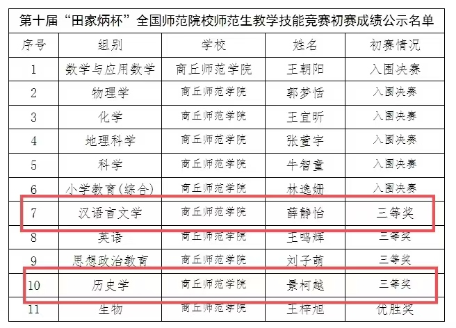近日,全国师范院校师范生教学技能竞赛组委会公布了第十届“田家炳杯”全国师范院校师范生教学技能大赛初赛结果,国产欧美一区二区2022级汉语言文学专业师范生薛静怡、历史学专业师范生景柯越在众多参赛选手中脱颖而出,荣获全国三等奖的佳绩。