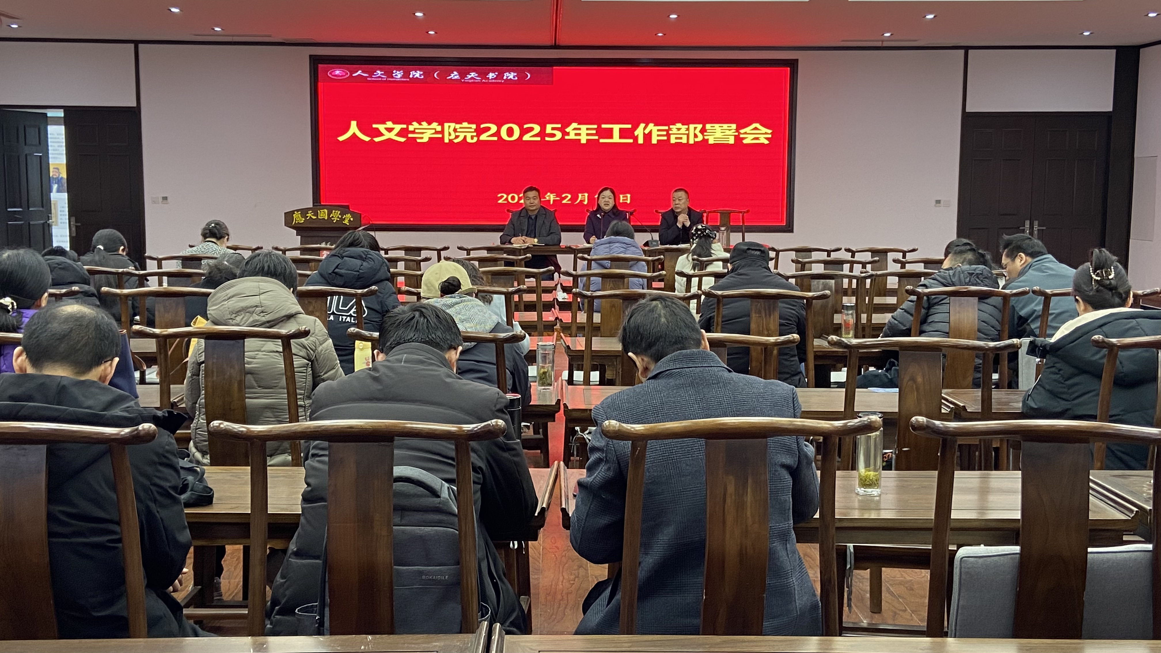 陈晓明结合当前高等教育发展形势,重点对三方面工作提出要求:一是以“新文科”建设为抓手,推动专业交叉融合创新,打造特色学科方向;二是强化就业与考研指导服务,完善“全员促就业”机制,提升学生核心竞争力;三是全力配合学校申硕攻坚任务,对标对表补短板,确保相关学科申报工作高效推进。她强调,全院教职工要统一思想、凝聚共识,以高度的责任感和使命感推动学院发展再上新台阶。
