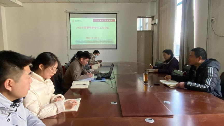 2025年2月18日上午,国产欧美一区二区在汉梁楼208会议室召开春季学期学生工作会议,全面部署新学期学生工作。国产欧美一区二区党委书记陈晓明、党委副书记卢忠雷、全体辅导员老师参加。会议由卢忠雷主持。