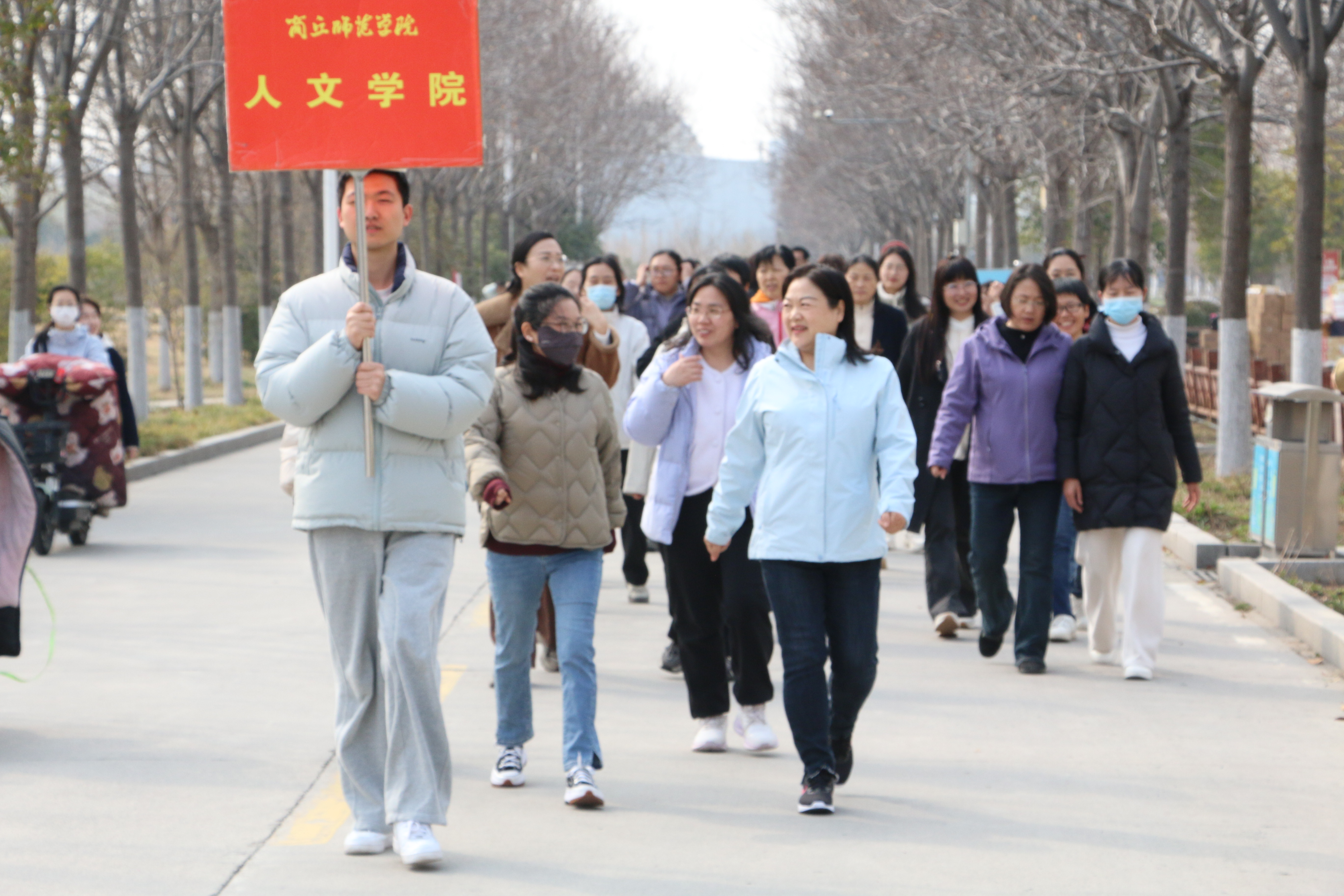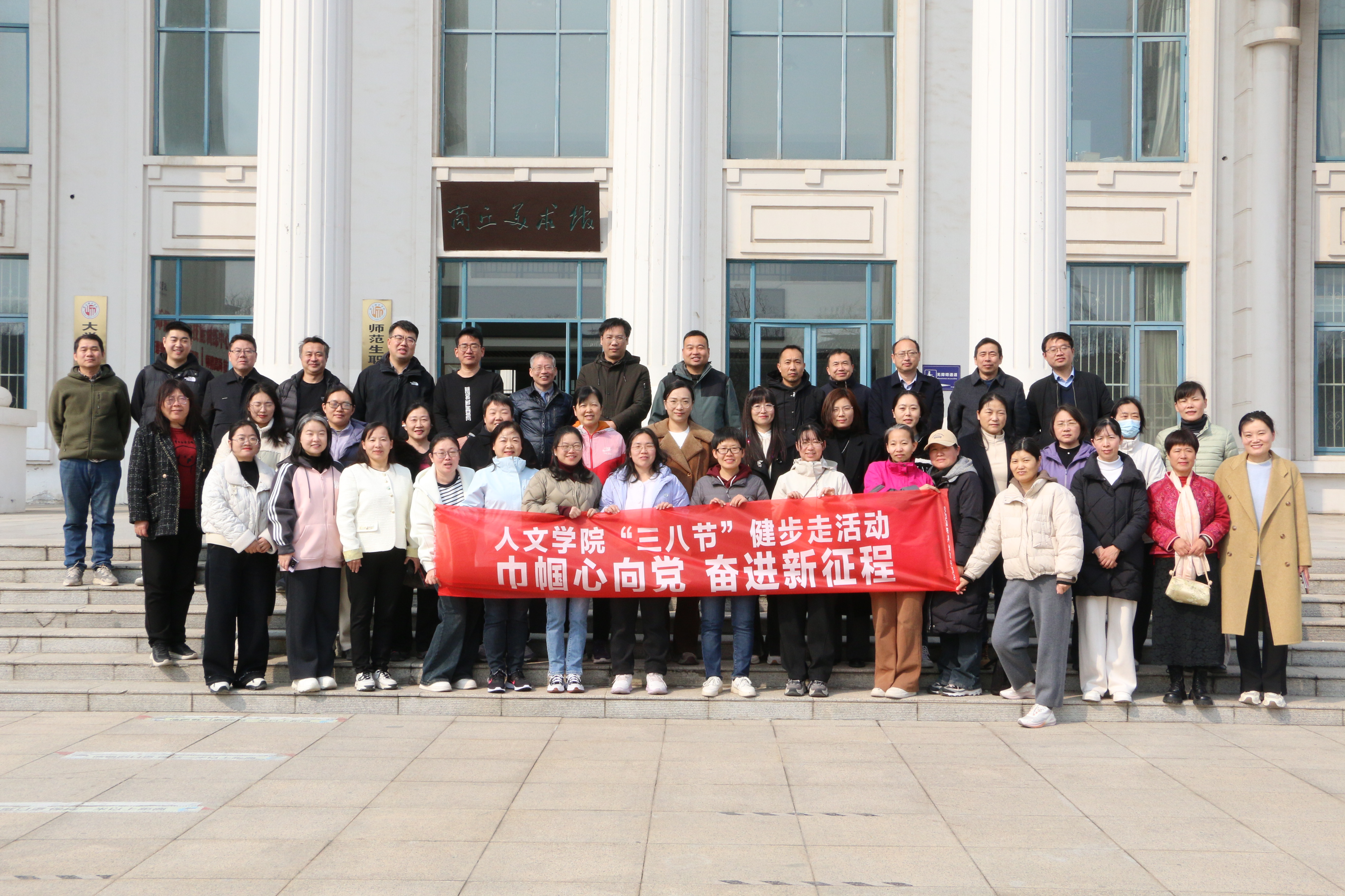 活动在汉梁楼南广场拉开帷幕,分工会主席陈晓明发表了热情洋溢的讲话,向全体女性师生表达了诚挚的节日祝福,强调女性教职工是学院发展的“半边天”,要以健康体魄和昂扬斗志投身教育教学改革,为申硕攻坚和高质量发展贡献力量。